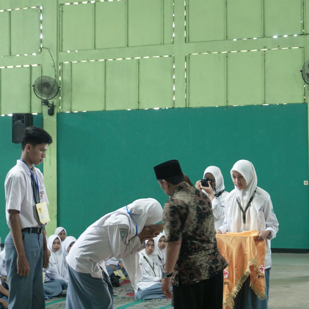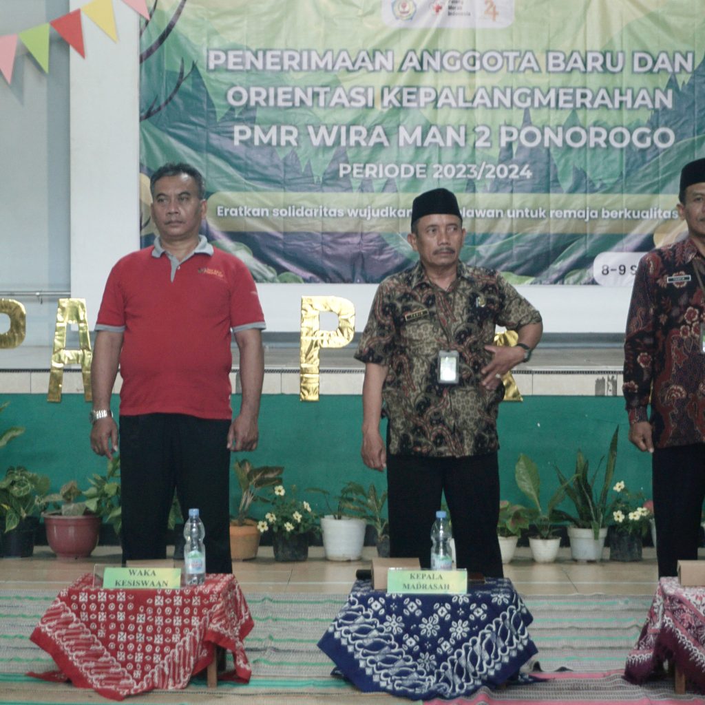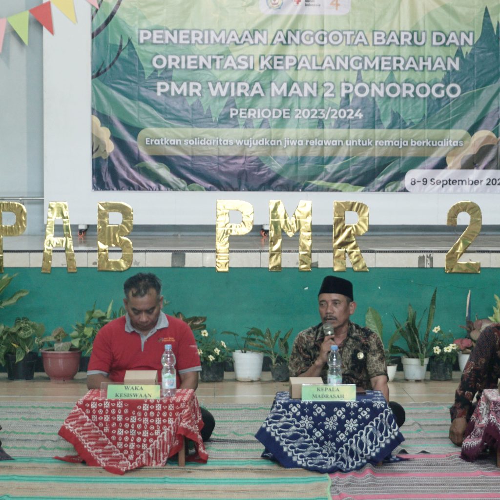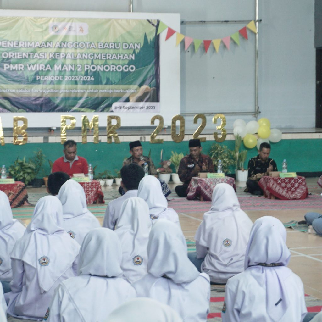Ponorogo, 8 Agustus 2023. PMR Wira MAN 2 Ponorogo mengadakan PAB (Penerimaan Anggota Baru) yang di laksanakan 2 hari berturut-turut pada 8-9 September 2023. Acara ini berjalan dengan lancar yang berlokasi di GOR MAN 2 Ponorogo, dan diikuti sebanyak 83 siswa. Pembukaan acara ini ditandai dengan penyematan tanda peserta oleh Bapak Drs.Tarib, M.Pd.I selaku kepala madrasah. Acara ini juga dihadiri 2 pemateri yaitu dari PMI yang diwakili Nugraha Kresna Mukti dengan materi “sejarah kepalangmerahan, tri bakti dan 7 prinsip”, dan Bpk Heri Sunaryadi, S.Pd selaku guru BK di Madrasah dengan materi yang dibawakan yaitu “Obat Obatan”.