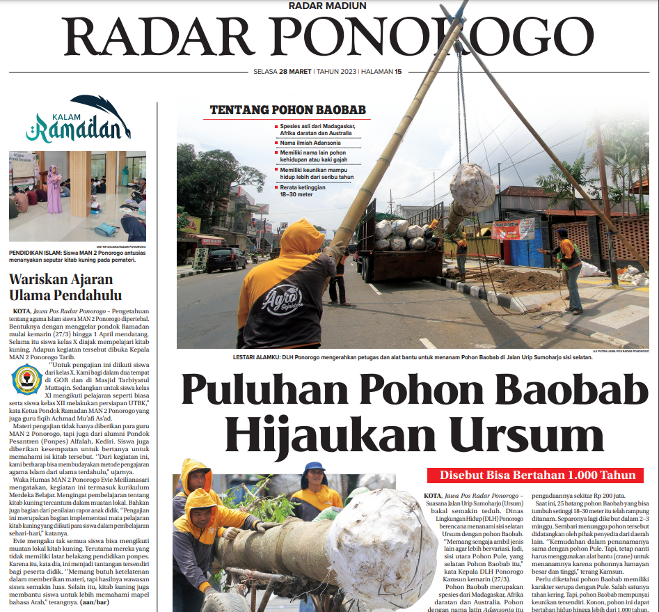 Berita Pondok Romadhon MAN 2 Ponorogo juga dapat dibaca di Jawa Pos edisi SELASA 28 MARET | TAHUN 2023 | halaman 15