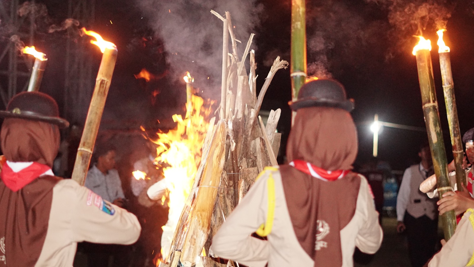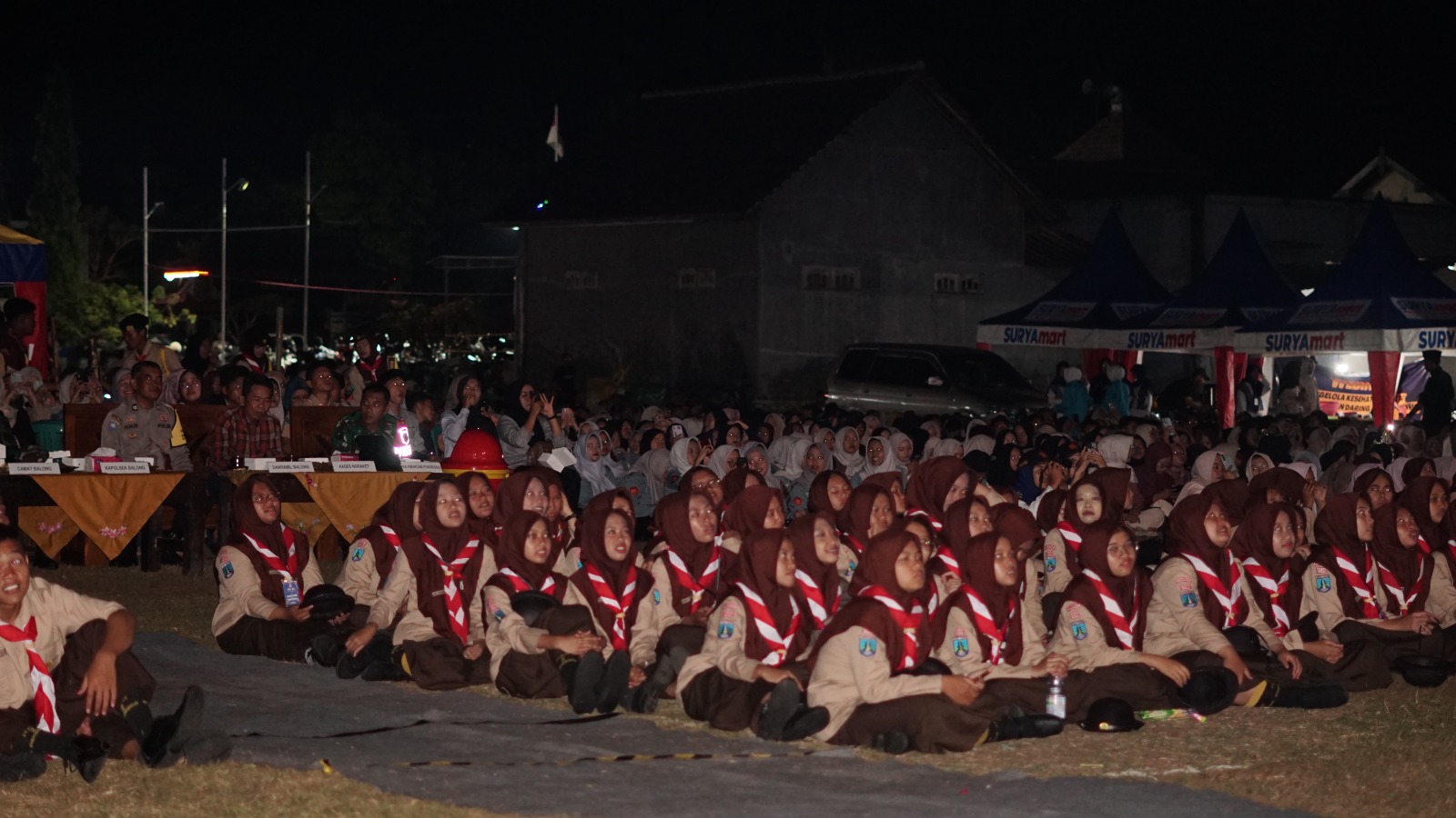 Menjelang malam, kegiatan bernuansa religi digelar dengan shalat berjamaah, dzikir, dan sholawat bersama. Suasana riuh mengiringi lomba yel-yel antar sangga. Malam pertama pun ditutup dengan istirahat, diiringi sistem piket keamanan untuk menjaga kenyamanan peserta.