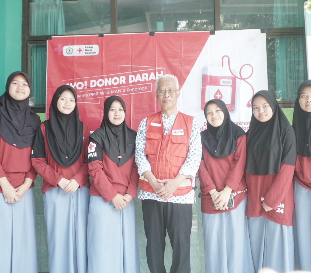 Ponorogo, 5 Oktober 2023. Kegiatan donor darah dilaksanakan oleh PMR WIRA MAN 2 Ponorogo bersama PMI (Palang Merah Indonesia) Ponorogo bertempat di ruang UKS MAN 2 Ponorogo. Program donor darah ini merupakan kegiatan rutin PMR yang dilakukan 3 bulan sekali. Kegiatan ini diikuti oleh seluruh siswa dan guru yang memenuhi persyaratan donor darah. Antusiasme yang tinggi nampak dari banyaknya jumlah pendonor yang datang ke lokasi.
