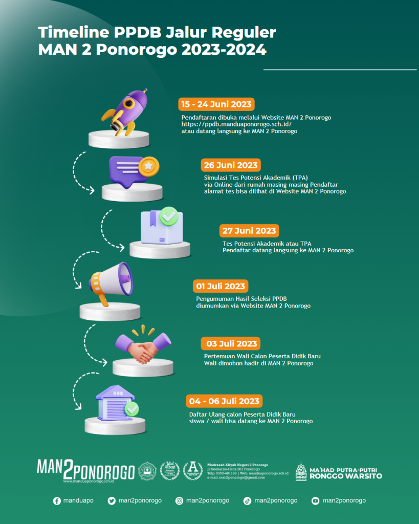 2) Pendaftaran dilakukan secara online/offline (disarankan datang ke MAN 2 Ponorogo).