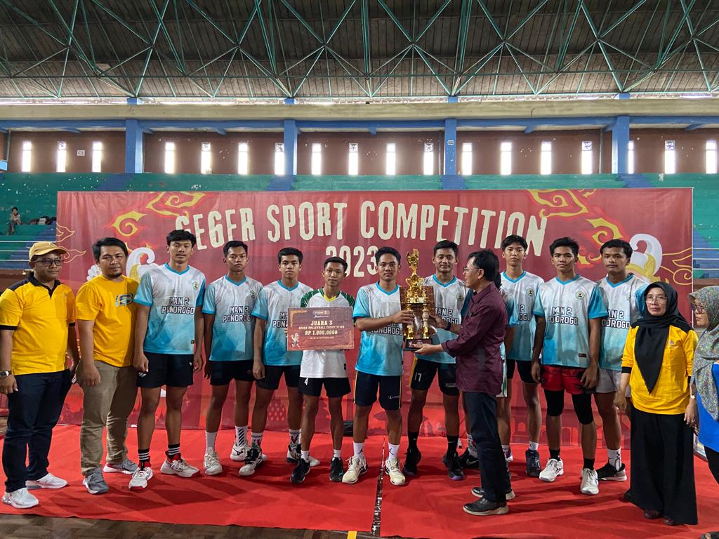 Tim bola voli putra MAN 2 Ponorogo kembali mencetak sejarah pada GEGER SPORT COMPETITION (GSC) 2023. GSC merupakan kompetisi tahunan berskala nasional yang rutin diselenggarakan oleh SMAN 1 GEGER. Kompetisi yang diselenggarakan pada Kamis, 28 September 2023 – Sabtu, 30 September 2023 Di GOR Wilis, Kabupaten Madiun berhasil menuai kegembiraan untuk tim bola voli putra MAN 2 Ponorogo dengan diraihnya juara 3 pada kompetisi tersebut.