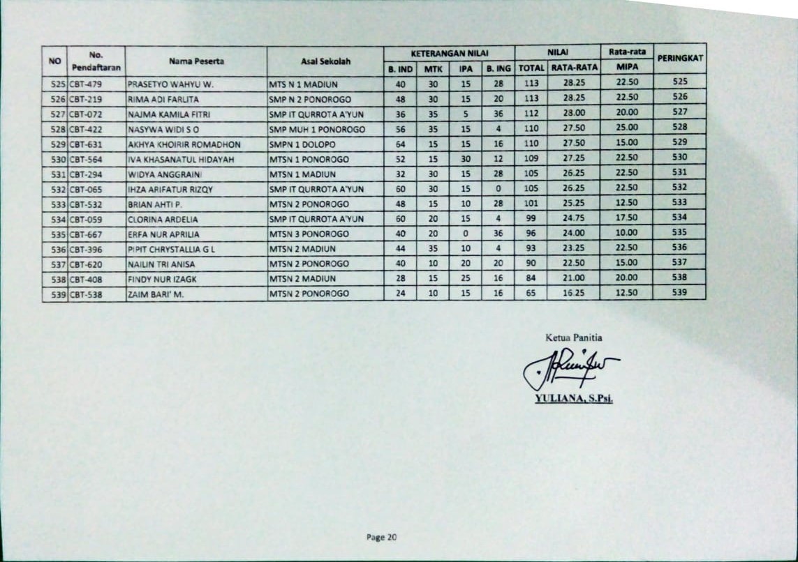 Sesuai yang tercantum pada Pamflet maka Ranking 1-100 berhak mendapatkan Golden Tiket MAN 2 Ponorogo