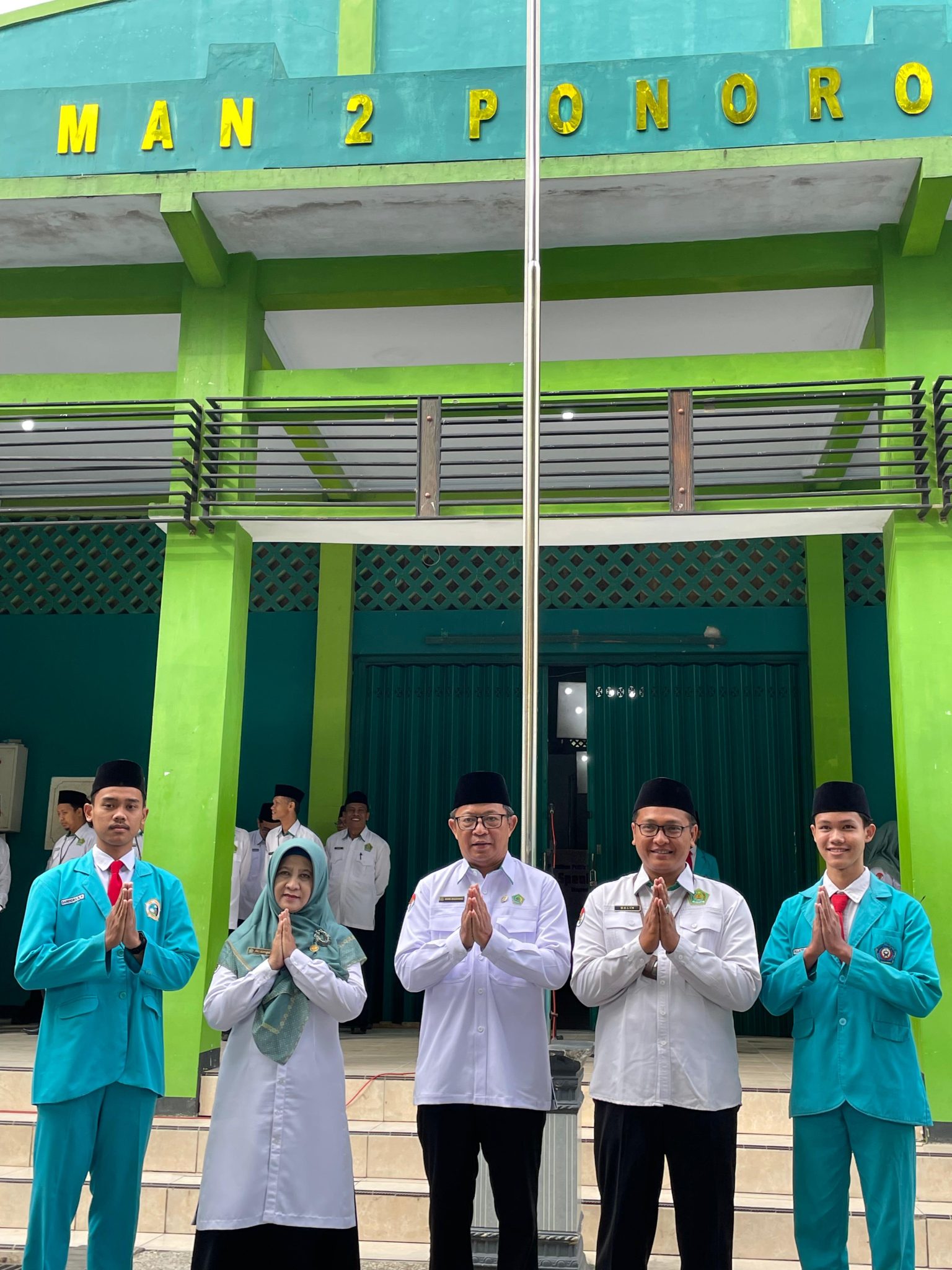 Ponorogo (8/9) – MAN 2 Ponorogo melaksanakan Upacara Pelantikan dan Serah Terima Jabatan (Sertijab) Organisasi Siswa Intra Madrasah (OSIM) masa bakti 2025/2026 di lapangan utama madrasah. Acara ini dihadiri oleh seluruh siswa, Bapak/Ibu guru, serta jajaran pimpinan madrasah.