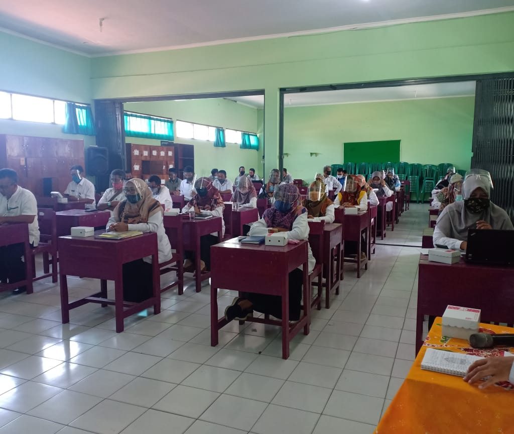Rabu, 9 September 2020. Menjelang dilaksanakannya pembelajaran tatap muka di MAN 2 Ponorogo, UPT Puskesmas Ponorogo Utara Kec. Ponorogo menggelar sosialisasi sekaligus visitasi persiapan pembelajaran tatap muka. Acara ini dihadiri oleh Bpk/ibu guru dan karyawan MAN 2 Ponorogo serta Tim gugus tugas Covid 19.