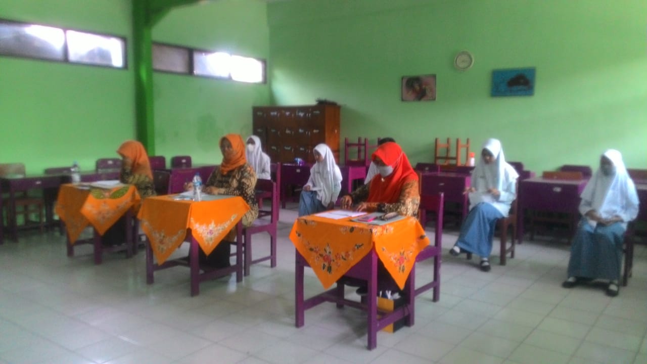 “Alhamdulillah.., pada saat ini kegiatan bisa berjalan dengan baik dan lancar, meskipun dengan protokol kesehatan yang ketat,” ujar Bapak Wilson Arifudin Ashari, S.Pd, selaku ketua panitia KTS. Sebagai upaya memenuhi prokes, pihak panitia membatasi kehadiran siswa di madrasah. Pada hari Kamis yang diizinkan hadir adalah siswa dengan nomor urut ganjil, sedangkan pada hari Jumat yang bernomor urut genap. Tentu saja ditambah dengan siswa yang mewakili kelasnya mengikuti perlombaan.