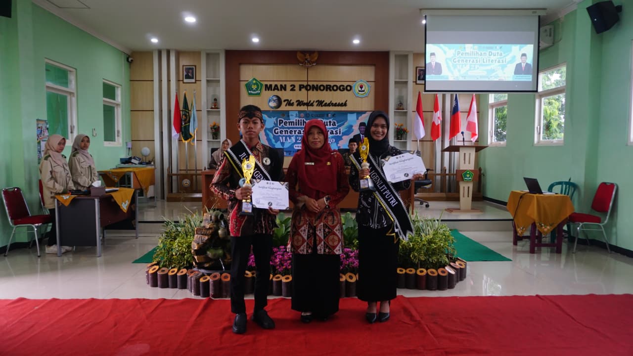 Dengan demikian, pasangan pemenang resmi dinobatkan sebagai Duta Generasi Literasi ( Gen-Lit) MAN 2 Ponorogo periode 2025–2026. Acara ditutup dengan penuh semangat, membawa harapan baru untuk meningkatkan budaya literasi di kalangan siswa MAN 2 Ponorogo.