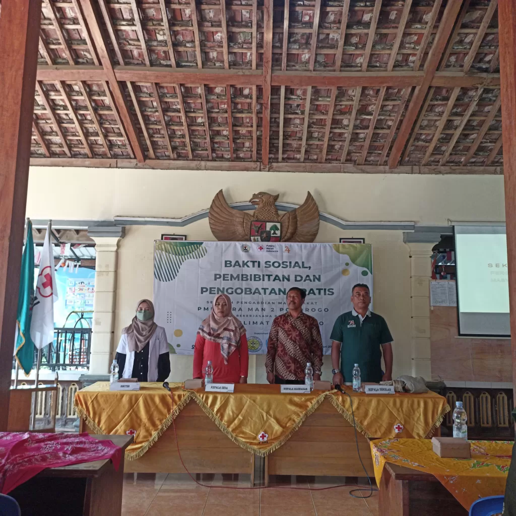 Ponorogo, 24/2/2024. Dengan penuh antusias dan semangat, kini PMR wira MAN 2 Ponorogo kembali berkolaborasi bersama RSU Muslimat Ponorogo dan juga PMI Kabupaten Ponorogo, untuk mengadakan kegiatan tahunan, yakni “Sekolah Pengabdian Masyarakat” atau yang sering disebut dengan SPM. Kegiatan ini dilaksanakan pada tanggal 23/2/2024 sampai dengan tanggal 24/2/2024. Yang bertempat di Desa Karangpatihan, Kecamatan Pulung, Kabupaten Ponorogo. Diadakanya SPM ini tentunya mempunyai tujuan tersendiri antara lain adalah untuk membentuk karakter dari para siswa, khususnya anggota PMR.