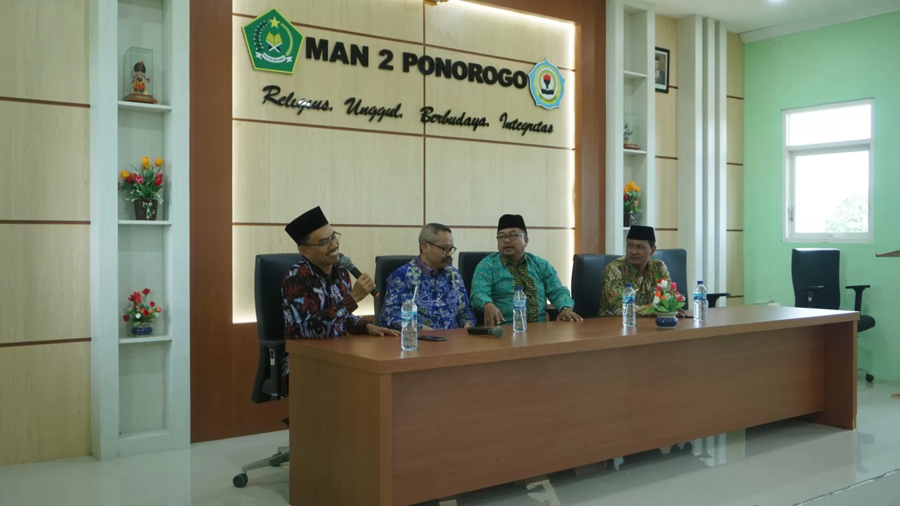 “MAN 2 Ponorogo patut bersyukur karena tidak semua madrasah mendapatkan SK program Kelas Internasional ini. Maka dengan program ini guru harus mempersiapkan diri untuk Go Internasional dan sangat perlu untuk studi banding ke luar negeri, karena lucu jika guru bicara tentang luar negeri tapi belum pernah ke luar negeri”  ujar Dr. Suwardi, M. Pd. Selaku Kepala Direktorat KSKK Kemenag RI.