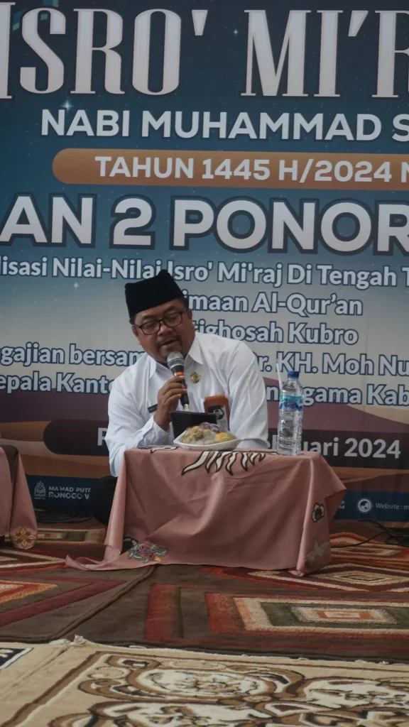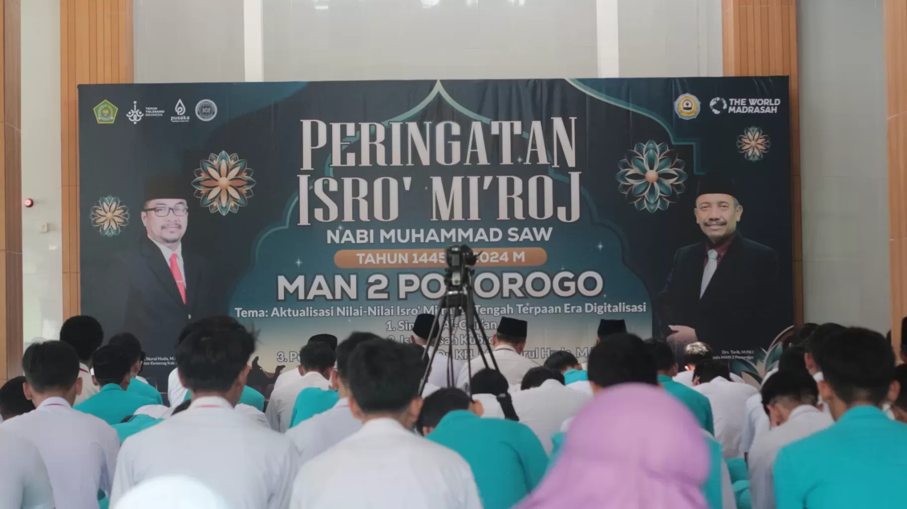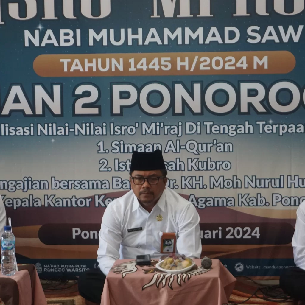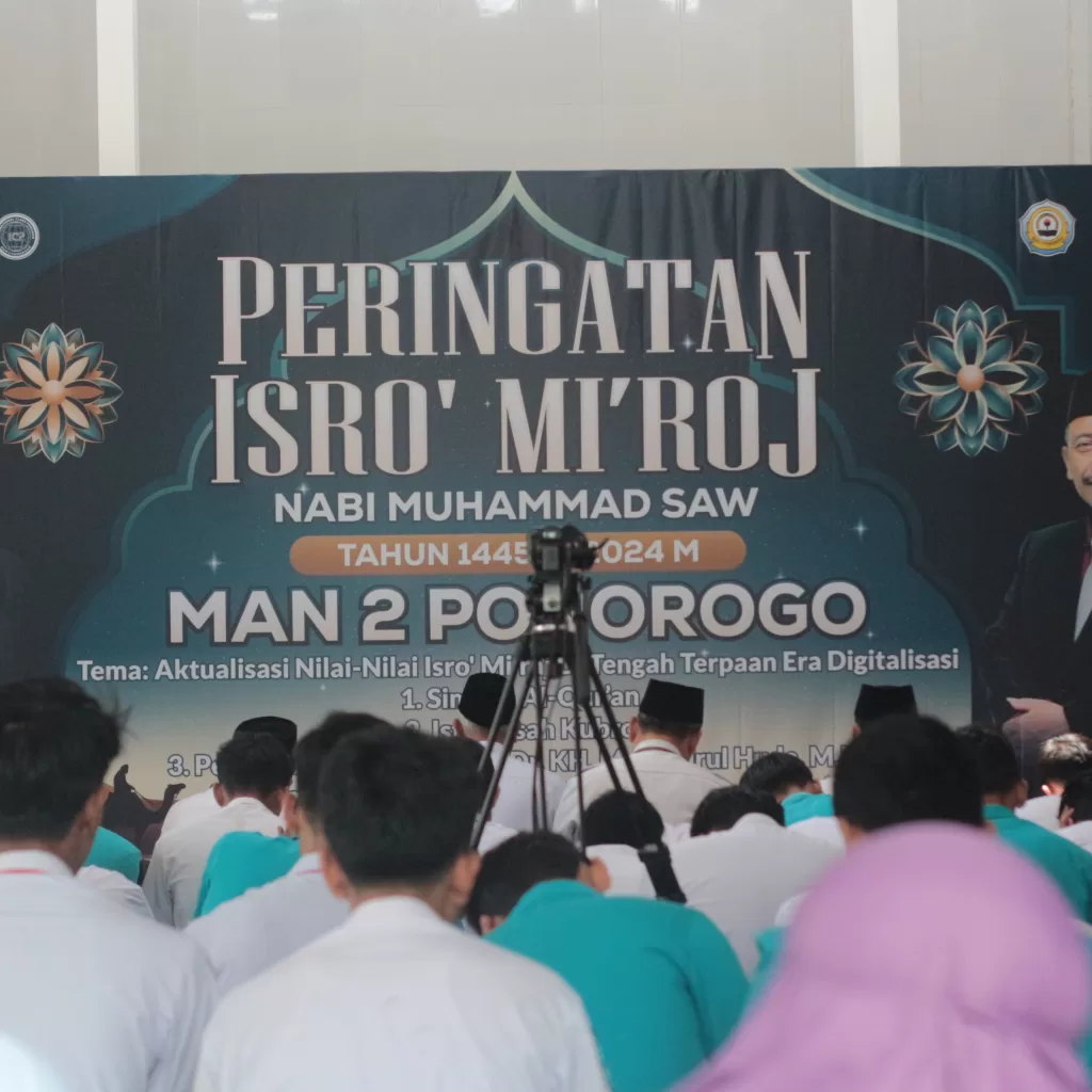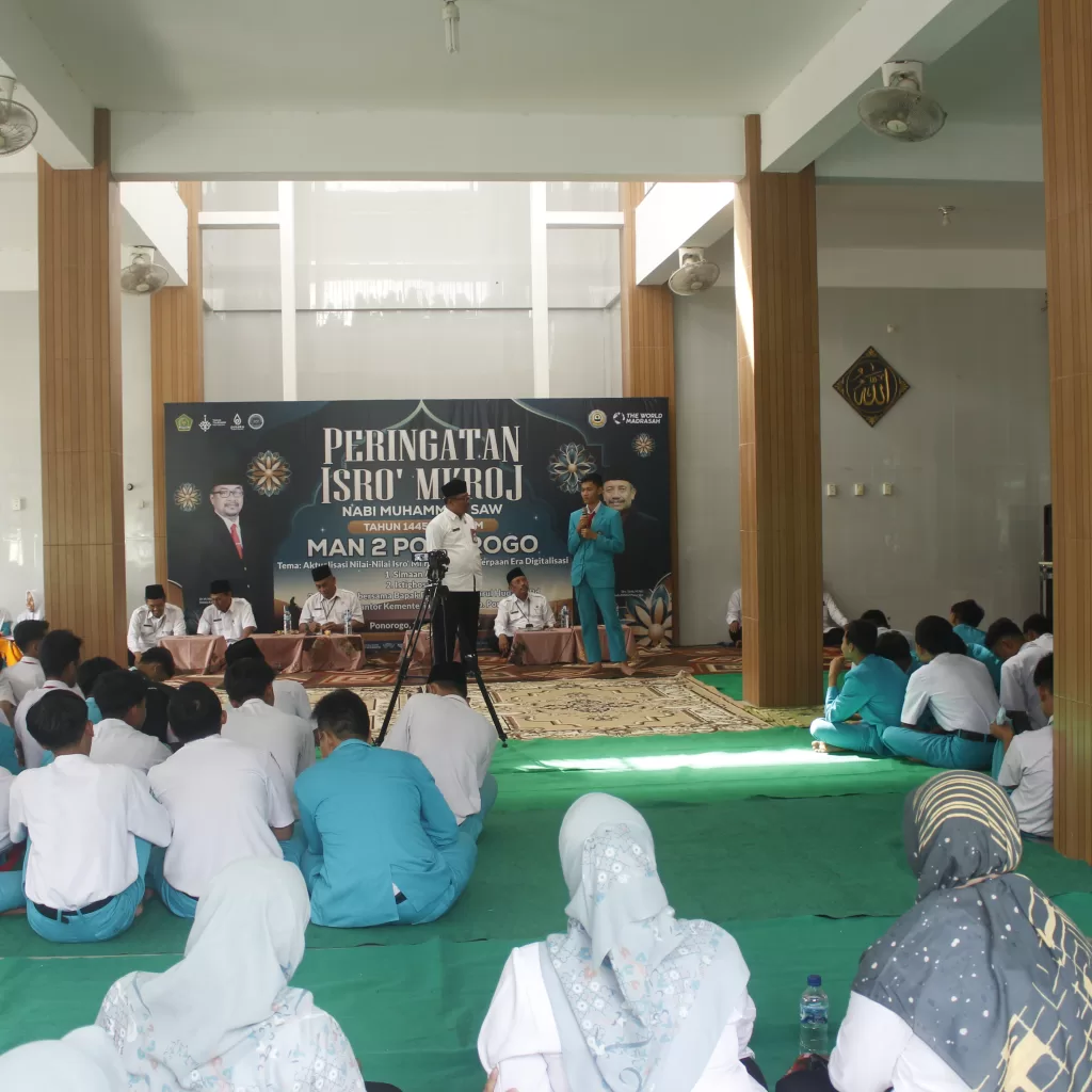Setelah melaksanakan apel, siswa siswi MAN 2 Ponorogo diarahkan menuju masjid Tarbiyatul Muttaqin untuk simaan al-quran hingga siang hari. Dilanjutkan dengan sholat Dhuhur berjamaah yang disusul oleh Istighosah Kubro. Puncak kegiatan hari ini adalah Pengajian dalam rangka Peringatan Isra’ Mi’raj Nabi Muhammad SAW dengan tamu spesial. Moh. Nurul Huda, selaku Kepala Kemenag Ponorogo memotivasi siswa supaya menjadi pribadi yang lebih baik.