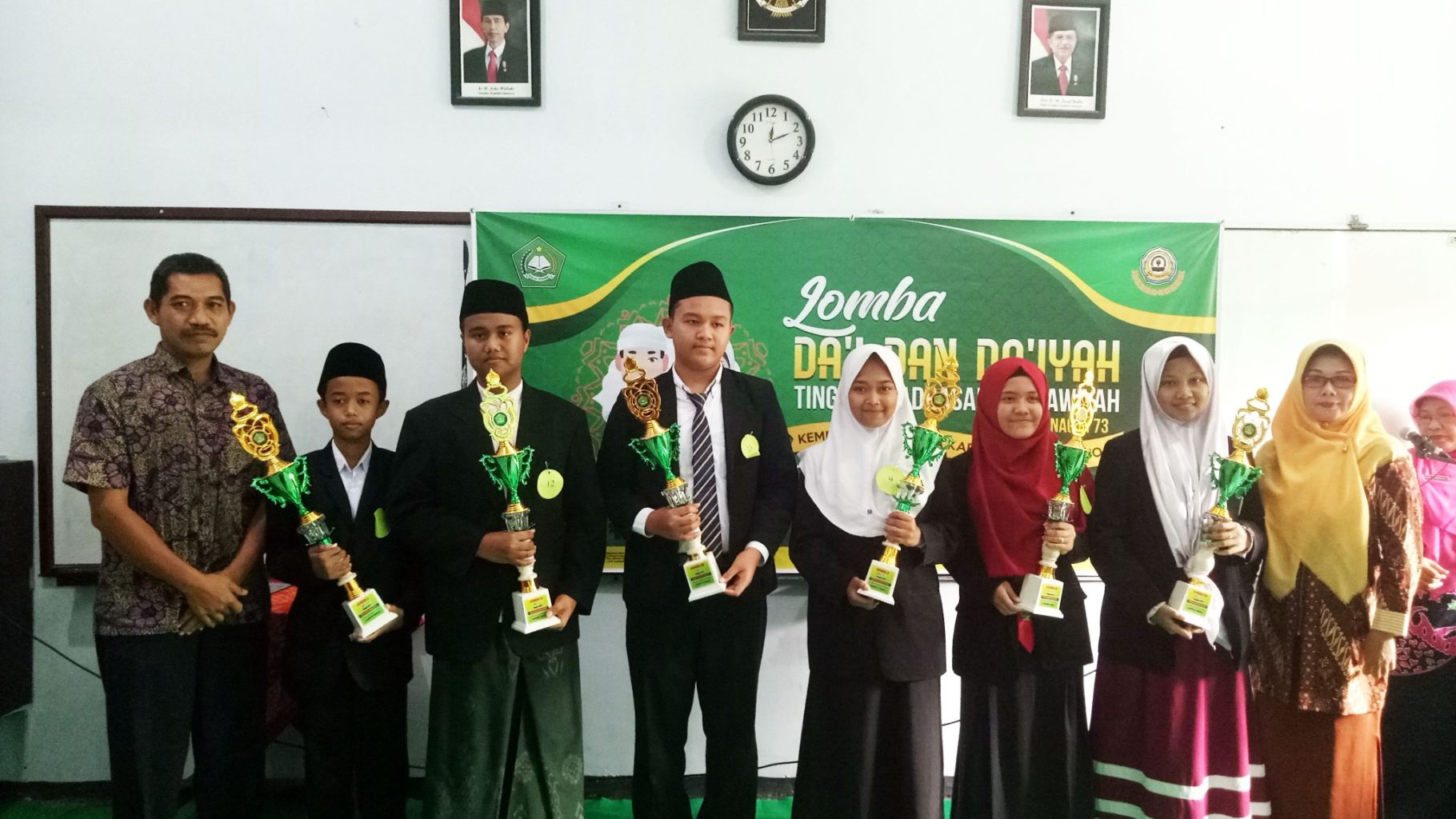 Lomba Da’i dan Da’iyah Tingkat MTS Se-Kabupaten Ponorogo | Ponorogo, 13/12. MAN 2 Ponorogo menjadi tempat diselenggarakannya lomba da’i dan da’iyah tingkat MTs Se-Kabupaten Ponorogo. Lomba ini diselenggarakan oleh Kemenag Kab. Ponorogo dalam rangka memperingati HAB (Hari Amal Bakti) Kemenag RI ke-73. Tujuan diadakannya lomba ini ialah untuk mengembangkan kompetensi generasi muda dalam bidang non-akademik keagamaan. Peserta dalam lomba ini adalah siswa-siswi MTs di Kab. Ponorogo kelas 7 — 9, dengan total 26 peserta yang terdaftar. Dalam perlombaan ini diambil Juara 1 sampai dengan Harapan 3 di setiap kategori. Terdapat tiga juri dalam perlombaan da’i dan da’iyah yaitu guru yang memiliki kompetensi pada bidang ini yang mana dari MAN 2 Ponorogo sendiri yaitu Bapak Muhamad Habibul Annami, Ibu Heni Hastuti, dan Ibu Uswatun Chasanah.
