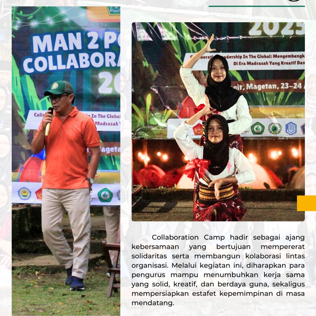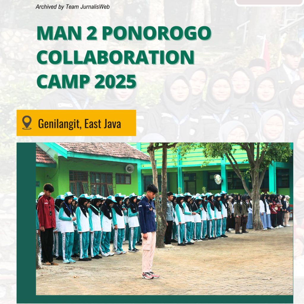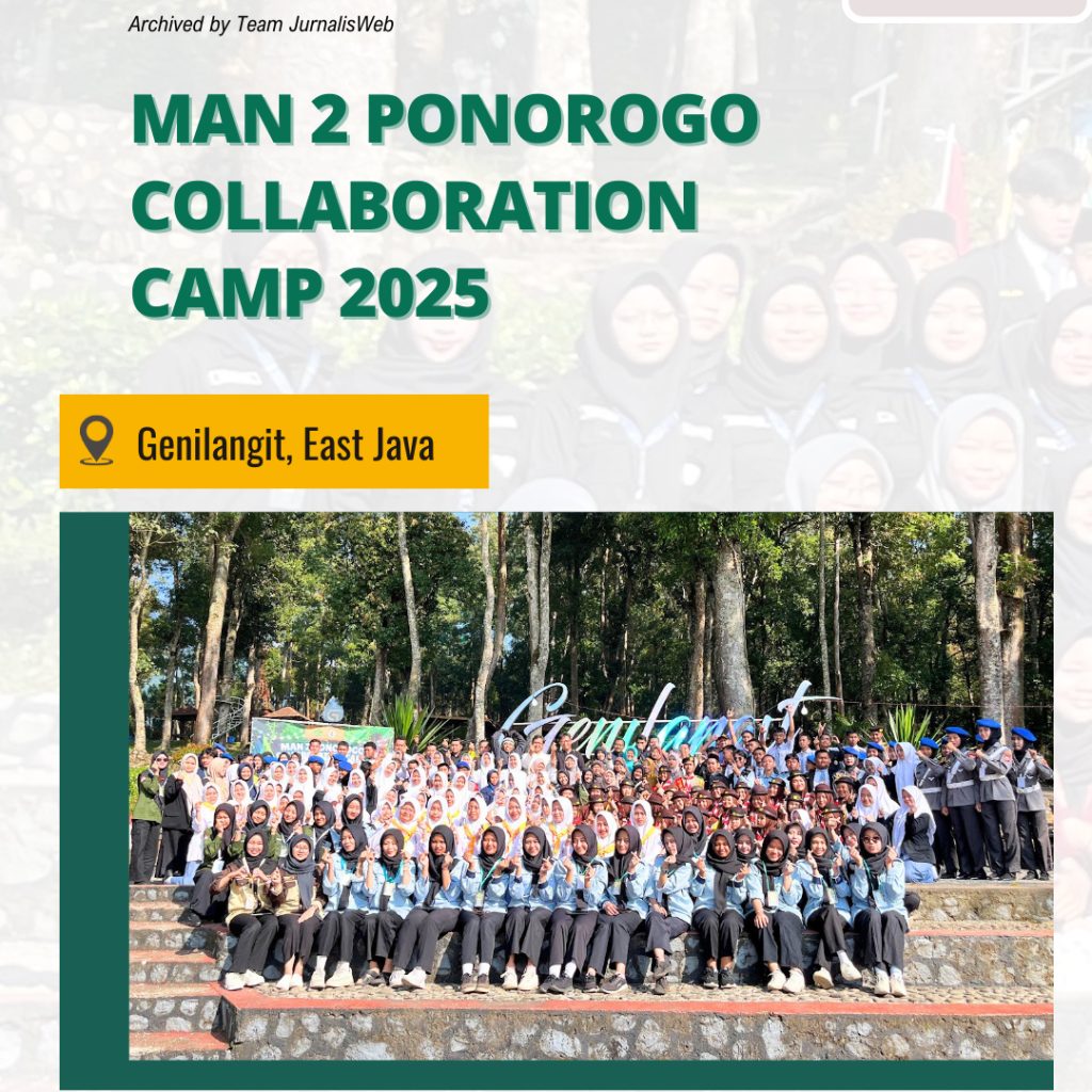 (Ponorogo/24/08/2025) MAN 2 Ponorogo sukses menyelenggarakan kegiatan MAN 2 Collaboration Camp (MCC). Kegiatan yang digelar di Bumi Perkemahan Genilangit, Magetan ini diikuti oleh seluruh organisasi dan ekstrakurikuler MAN 2 Ponorogo, dan melibatkan pengurus lama serta pengurus baru dari kelas XI dan XII.