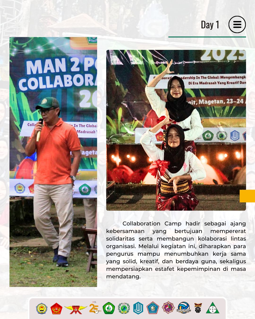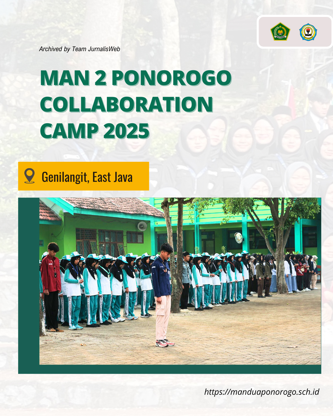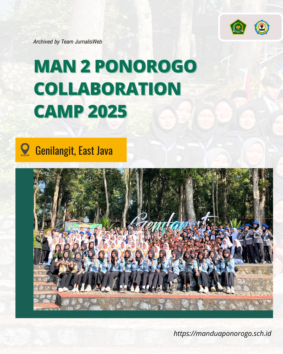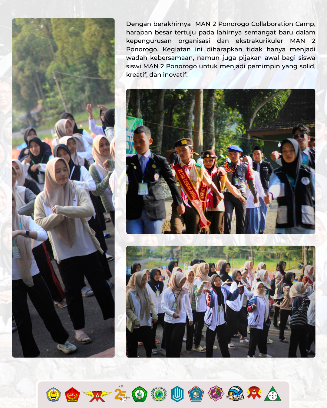 (Ponorogo/24/08/2025) MAN 2 Ponorogo sukses menyelenggarakan kegiatan MAN 2 Collaboration Camp (MCC). Kegiatan yang digelar di Bumi Perkemahan Genilangit, Magetan ini diikuti oleh seluruh organisasi dan ekstrakurikuler MAN 2 Ponorogo, dan melibatkan pengurus lama serta pengurus baru dari kelas XI dan XII.
