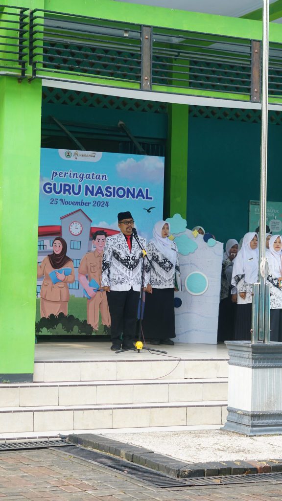 Ponorogo(25/11/2024) MAN 2 Ponorogo menggelar peringatan Hari Guru Nasional 2024 dengan serangkaian acara menarik di lapangan depan GOR madrasah. Kegiatan ini dimulai dengan upacara bendera sebagai bentuk penghormatan kepada para guru yang telah berjasa dalam mencerdaskan generasi bangsa. Dengan mengambil tema “Guru berdaya, Indonesia Jaya”, upacara yang diikuti oleh seluruh siswa dan GTK MAN 2 Ponorogo berlangsung khidmat. Upacara kali ini agak berbeda dari biasanya karena sebagai petugas upacara adalah para guru dengan pembina upacara Kepala Kantor Kementerian Agama Kabupaten Ponorogo, Nurul Huda.
