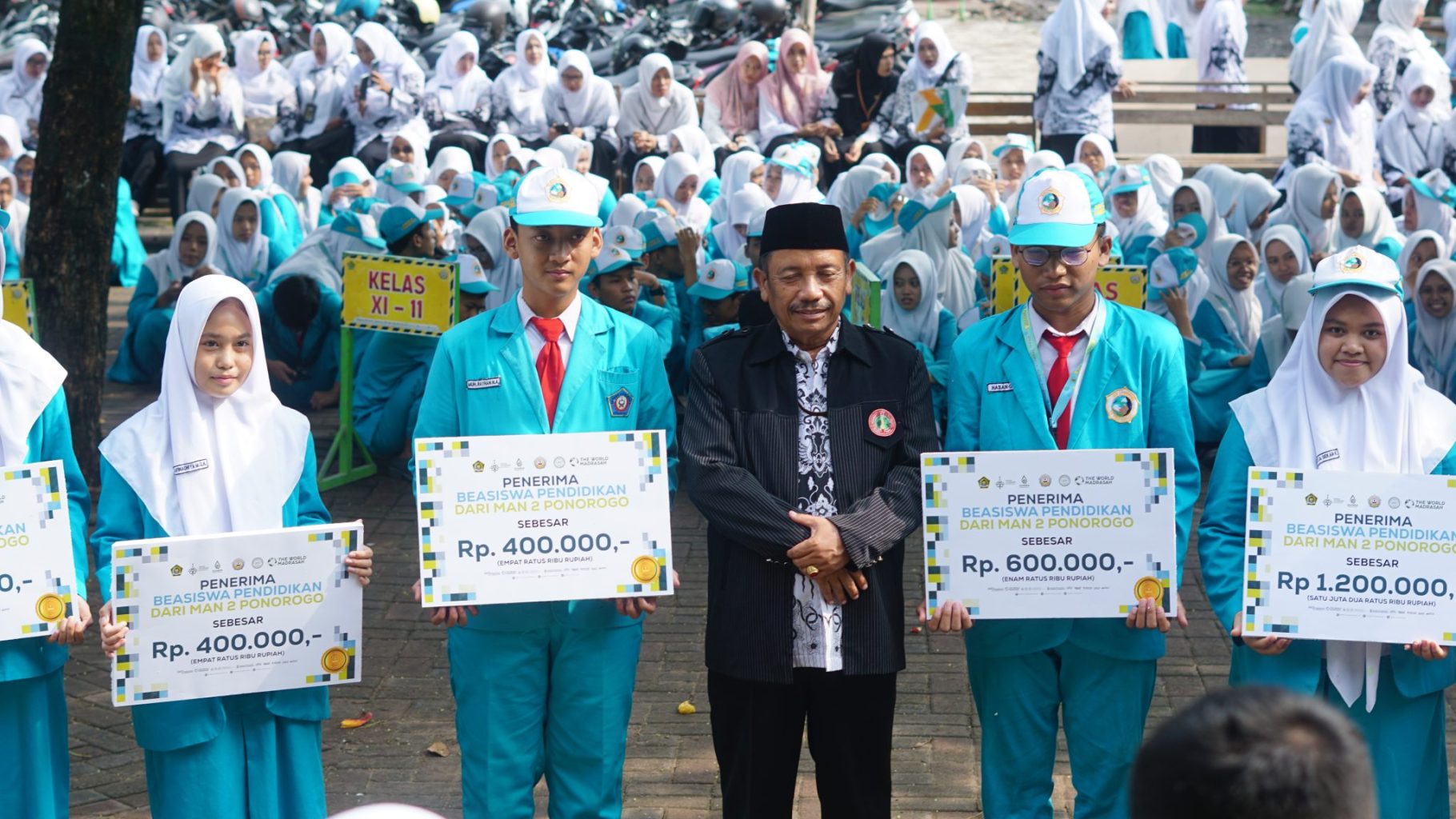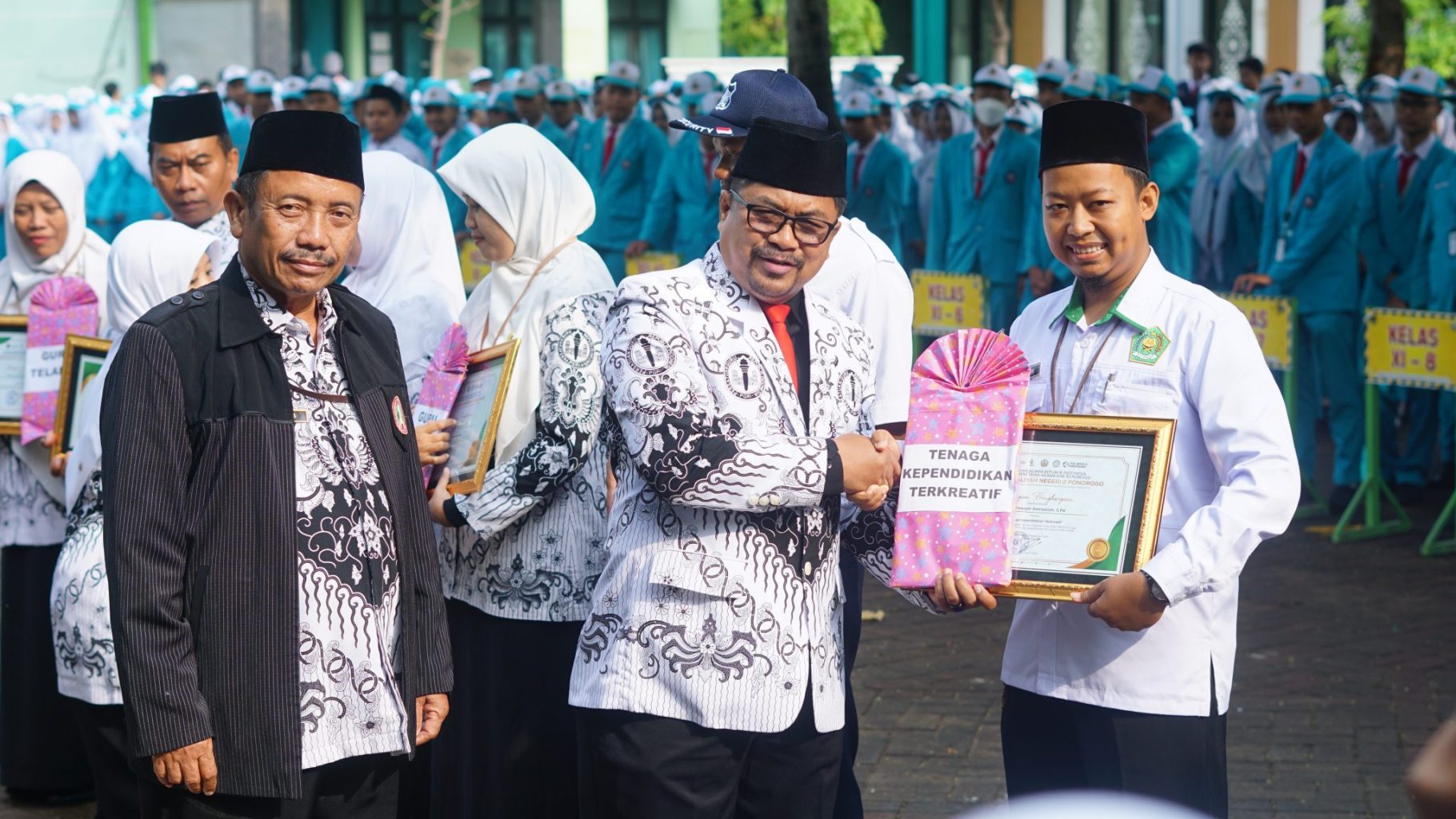 Pada kesempatan ini juga disampaikan penghargaan kepada para guru dan siswa yang telah banyak berperan untuk kemajuan MAN 2 Ponorogo menuju madrasah yang maju, bermutu, dan mendunia.