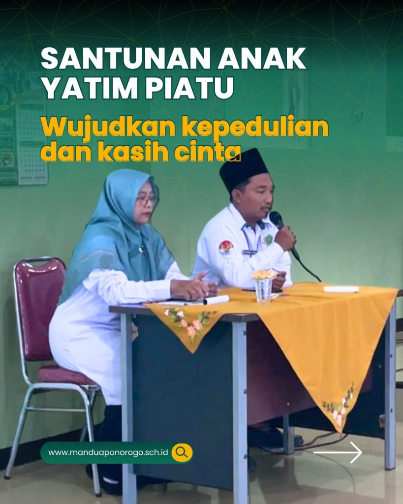 Ponorogo, 14 Juli 2025 — Dalam rangka menumbuhkan semangat kepedulian dan solidaritas sosial, MAN 2 Ponorogo menyelenggarakan kegiatan santunan bagi anak-anak yatim di lingkungan madrasah. Suasana khidmat dan haru terasa di aula MAN 2 Ponorogo yang dihadiri oleh perwakilan guru, siswa, serta staf tata usaha.