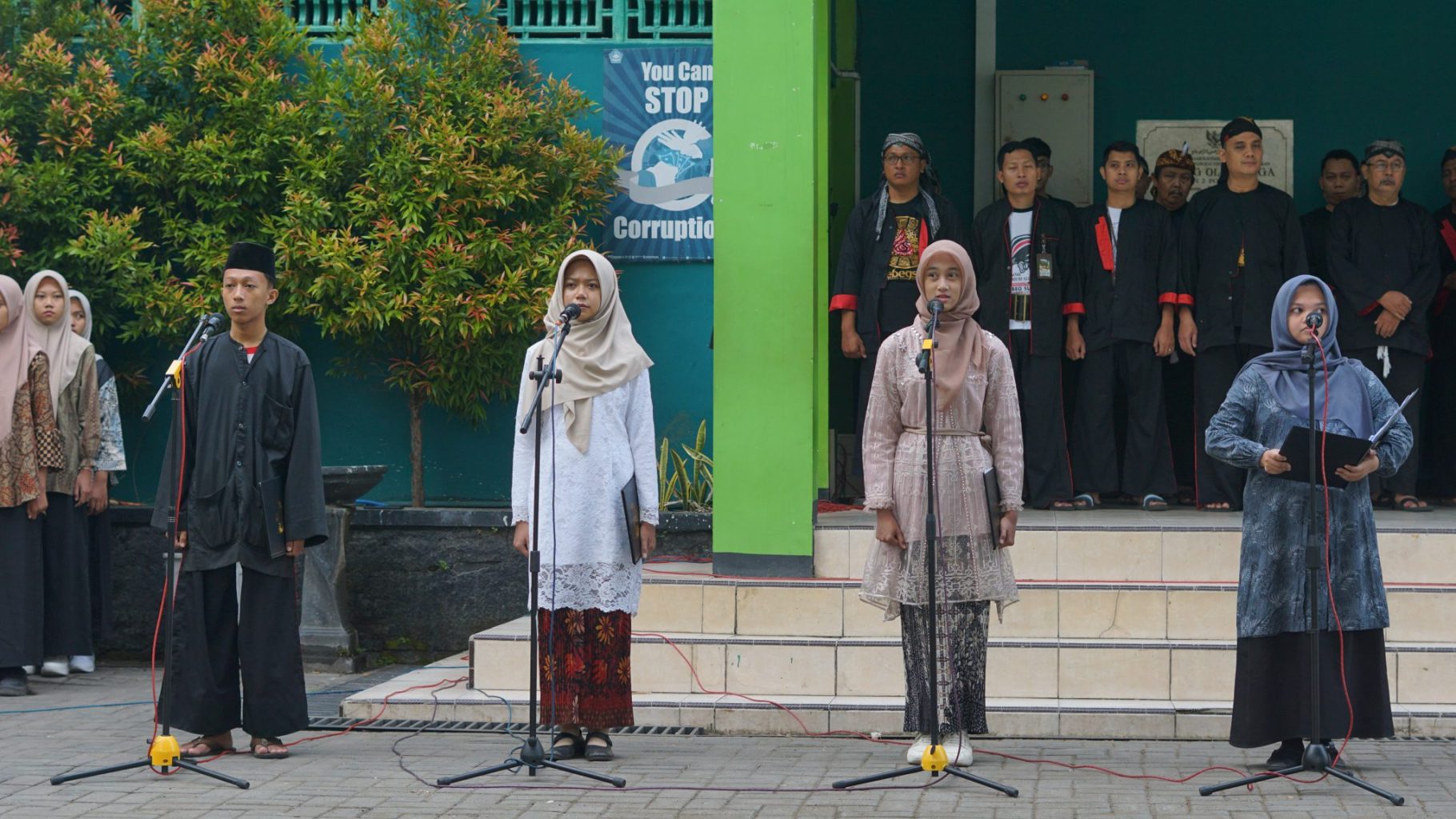 Upacara semakin meriah dan berkesan dengan menyanyikan lagu-lagu penuh semangat dan kebanggaan: Mars MAN 2 Ponorogo, The World Madrasah, serta lagu nasional “Dari Sabang Sampai Merauke” yang menggema di halaman madrasah, membangkitkan semangat persatuan dan cinta tanah air di hati para peserta.