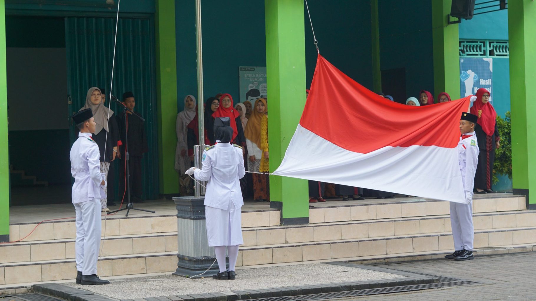 Upacara semakin meriah dan berkesan dengan menyanyikan lagu-lagu penuh semangat dan kebanggaan: Mars MAN 2 Ponorogo, The World Madrasah, serta lagu nasional “Dari Sabang Sampai Merauke” yang menggema di halaman madrasah, membangkitkan semangat persatuan dan cinta tanah air di hati para peserta.