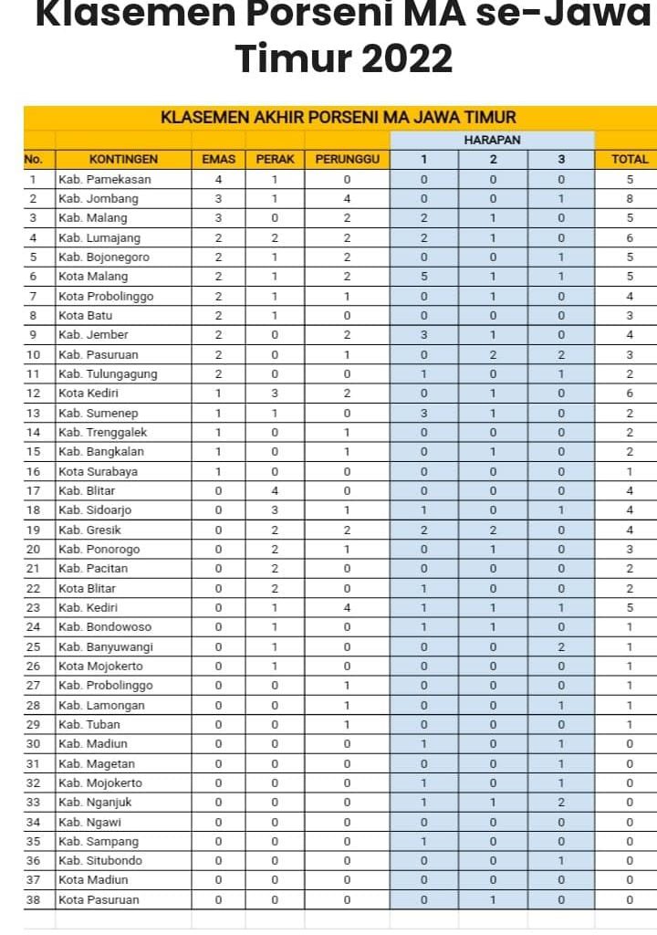 MAN 2 Ponorogo Raih 3 Medali di Porseni MA Tingkat Provinsi Jawa Timur Tahun 2022