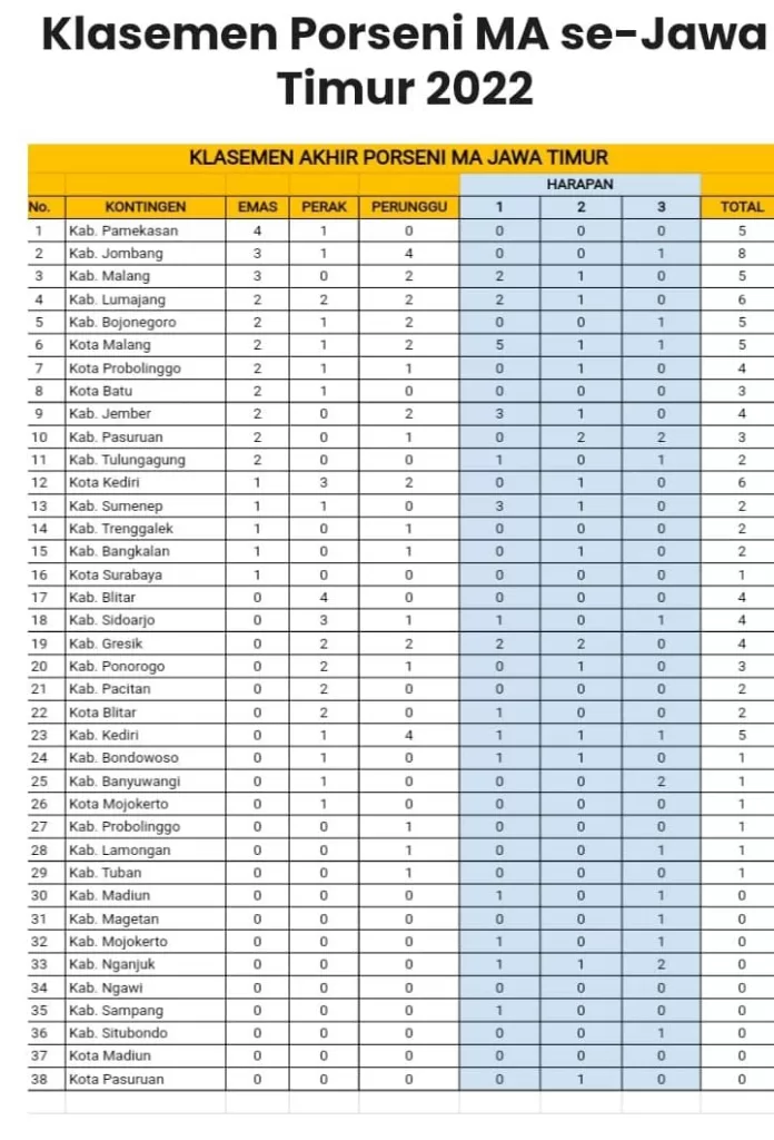 MAN 2 Ponorogo Raih 3 Medali di Porseni MA Tingkat Provinsi Jawa Timur Tahun 2022