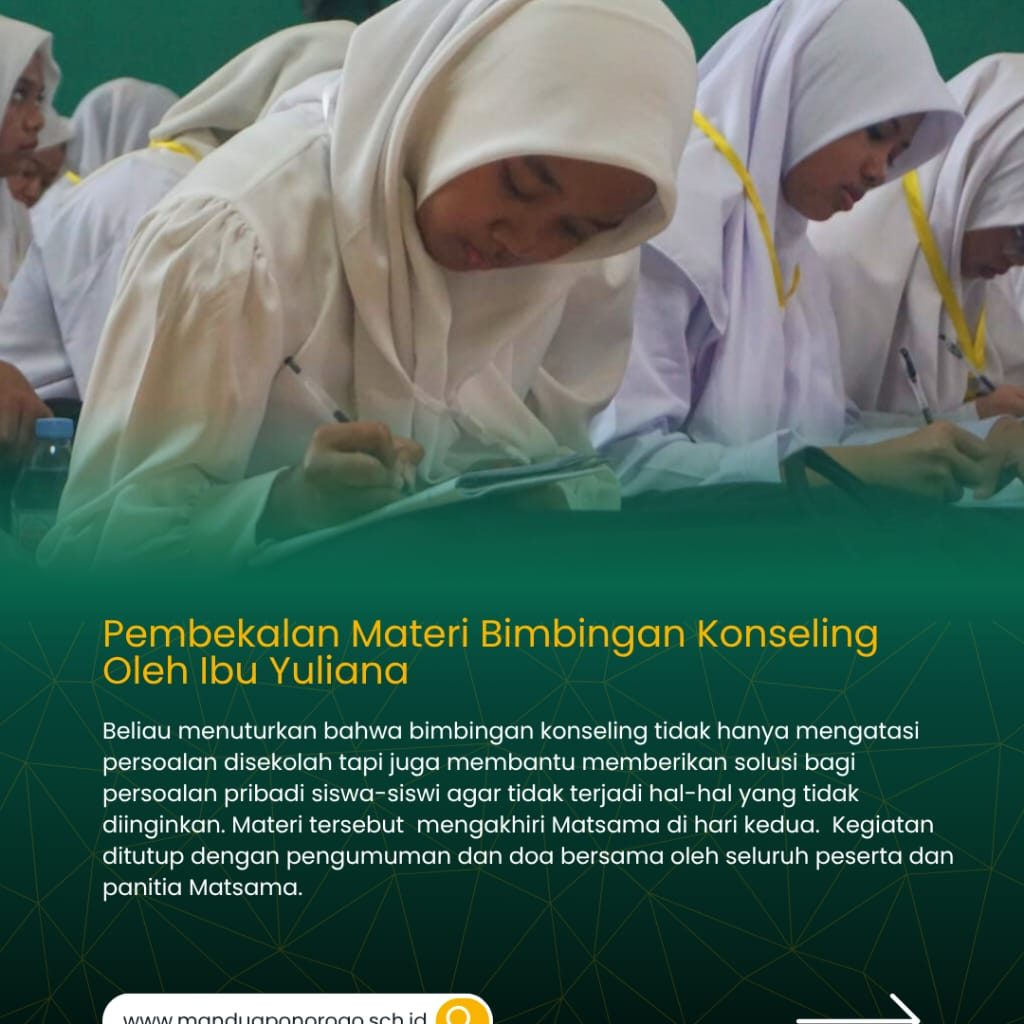 🚀✨ MATSAMA DAY 2! Siapkan Generasi Berkarakter & Berprestasi! 💪🏽🎓 Hari kedua Matsama di MAN 2 Ponorogo penuh makna! 💥 Mulai dari edukasi tertib lalu lintas, perlindungan anak, ikrar anti bullying, tata tertib madrasah, hingga bimbingan konseling — semua dirancang supaya siswa baru siap jadi pribadi hebat, disiplin, dan peduli! 🤝❤️ 🎁 Ada juga sesi seru hadiah helm, peragaan seragam, makan bareng, dan penutup doa penuh harap. Semoga semua materi jadi bekal berharga buat masa depan! 🌟 🔥 Yuk, buktikan kalau kalian siap jadi generasi madrasah yang berkarakter, berakhlak, dan berprestasi! #Matsama2025 #MAN2Ponorogo #TheWorldMadrasah
