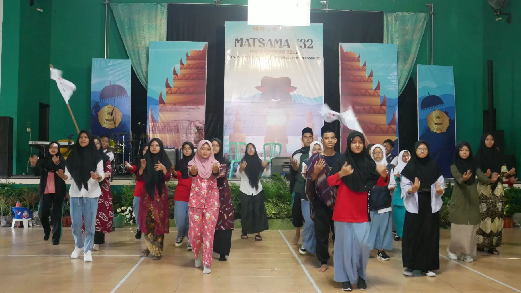 Ponorogo, 23/07/2022- MATSAMA (Masa Ta’aruf Siswa Madrasah) MAN 2 Ponorogo tahun pelajaran 2022/2023 baru saja usai. MATSAMA yang dilaksanakan secara tatap muka dan berlangsung selama 5 hari (Senin, 18 Juli sampai Jum’at, 22 Juli 2022) ini dibuka langsung oleh Kepala MAN 2 Ponorogo, bapak Nasta’in, S.Pd., M. Pd. I dengan ditandai penerbangan burung merpati dan penyematan kartu tanda peserta.
