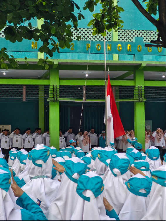Ponorogo (02/06/2025) – MAN 2 Ponorogo gelar upacara Peringatan Hari Pancasila yang diikuti oleh seluruh Guru dan Tenaga Kependidikan serta siswa kelas X dan XI. Kegiatan yang dimulai pukul 07:00 berlangsung tertib dan khidmat. Bertindak sebagai pembina upacara adalah Waka Humas, Ibu Hastutik Bayyinatur Rosyidah, M.Pd. Sedangkan petugas upacara , siswa-siswi kelas X dari berbagai layanan program kelas.