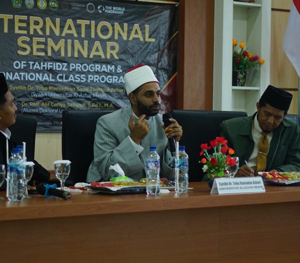 Pemateri pertama adalah Dr. Toha Romadhon Azhari. Beliau adalah dosen Universitas Al-Azhar Mesir. Beliau mengungkapkan bahwa jika ingin meneruskan studi lanjut ke Universitas Al-Azhar hanya memerlukan hafalan Al-Quran 2 Juz dan bisa berbahasa arab, disana nanti siswa akan dibimbing untuk menyelesaikan hafalannya hingga tuntas 30 Juz.