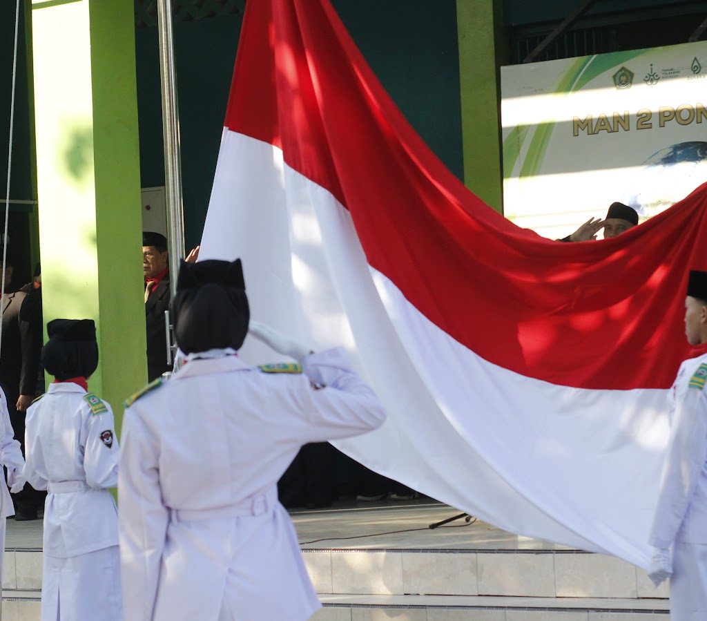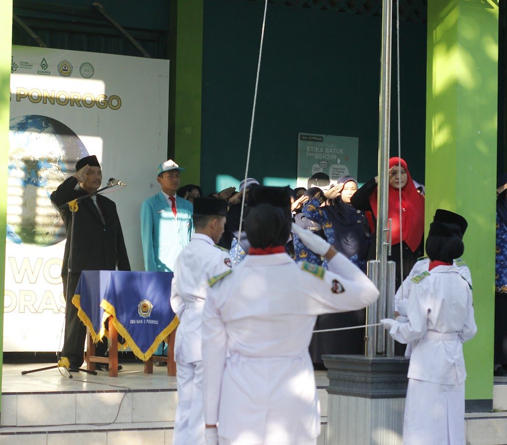 Ponorogo (17/08/ 2024. Semangat Nasionalisme menyelimuti MAN 2 Ponorogo. Dalam rangka memperingati Hari Ulang Tahun Republik Indonesia ke-79, MAN 2 Ponorogo melaksanakan upacara bendera yang diikuti oleh seluruh masyarakat MAN 2 Ponorogo. Upacara bendera dalam rangka memperingat Hari Ulang Tahun Republik Indonesia ini di lakukan dengan sangat hikmat oleh seluruh peserta upacara.