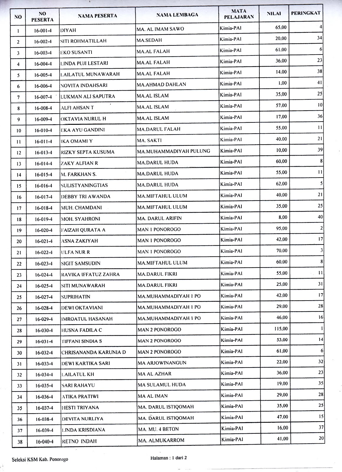 Pengumuman Hasil Nilai Murni | Matematika – PAIPengumuman Hasil Nilai Murni | Matematika – PAIPengumuman Hasil Nilai Murni | Kimia – PAIPengumuman Hasil Nilai Murni | Kimia – PAI