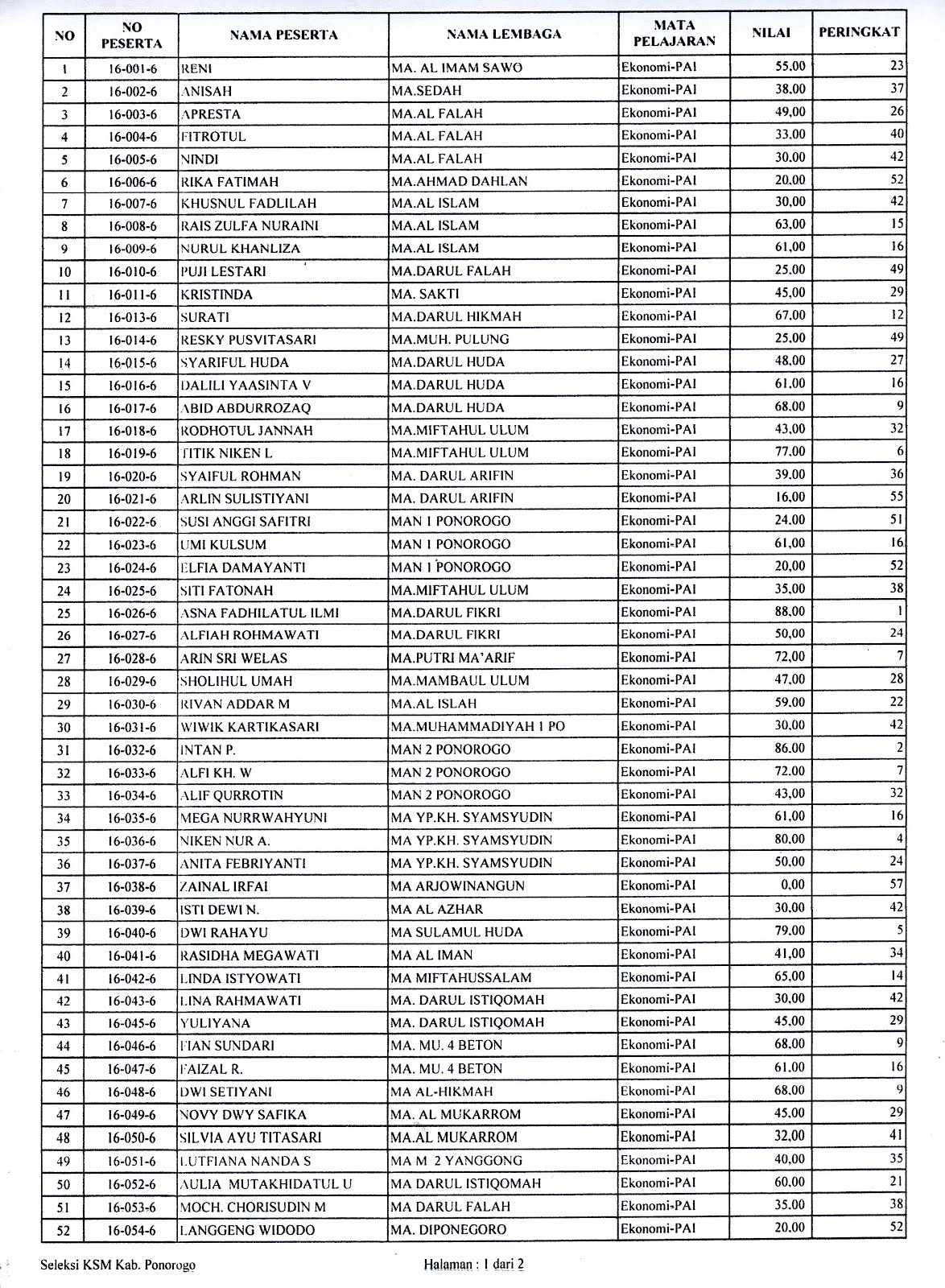 Pengumuman Hasil Nilai Murni | Biologi – PAIPengumuman Hasil Nilai Murni | Biologi – PAIPengumuman Hasil Nilai Murni | Ekonomi – PAIPengumuman Hasil Nilai Murni | Ekonomi – PAI