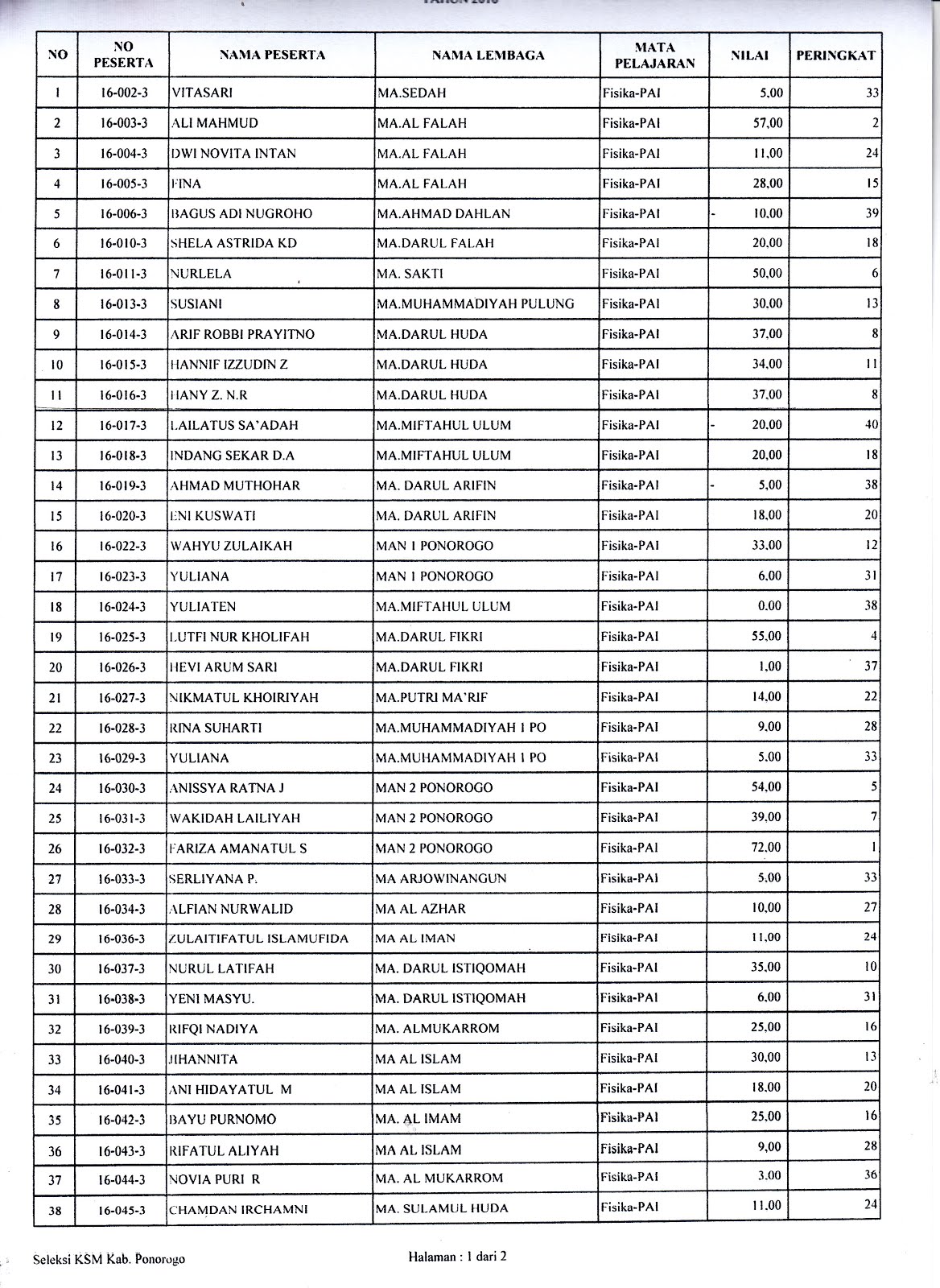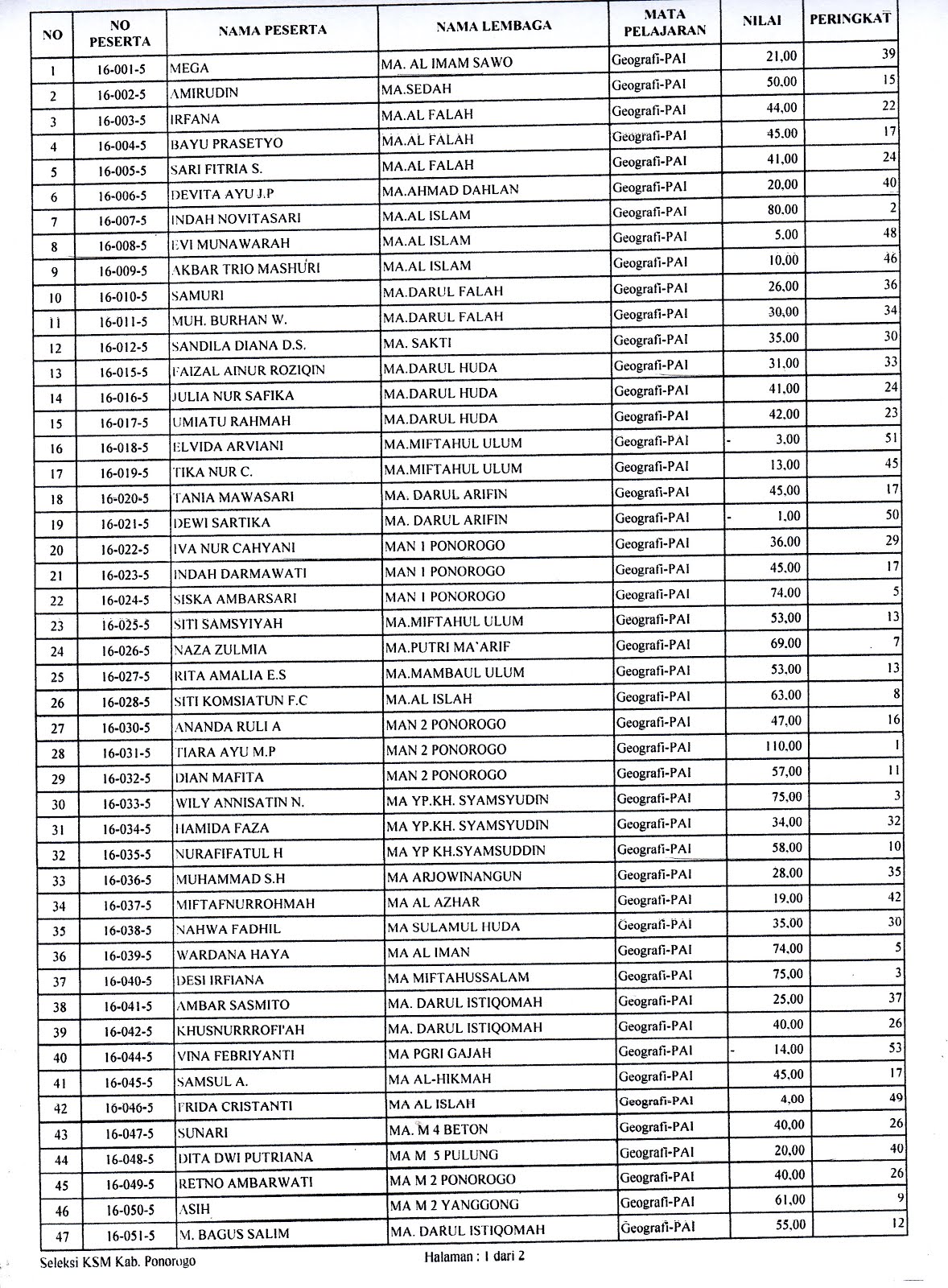 Pengumuman Hasil Nilai Murni | Geografi – PAIPengumuman Hasil Nilai Murni | Geografi – PAIPengumuman Hasil Nilai Murni | Fisika – PAIPengumuman Hasil Nilai Murni | Fisika – PAI