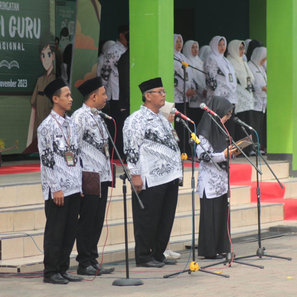 Ponorogo (25/11/23) – Dalam rangka memperingati Hari Guru Nasional, MAN 2 Ponorogo menggelar upacara yang diikuti oleh seluruh bapak-ibu guru dan siswa-siswi. Tidak hanya itu, unutuk memeriahkan upacara peringatan Hari Guru Nasional, madrasah menampilkan pentas seni yang menakjubkan dari berbagai ekstrakurikuler yang ada di Madrasah. Upacara dimulai pukul 07.00 pagi di lapangan madrasah dengan dihadiri oleh seluruh siswa dan guru MAN 2 Ponorogo. Acara ini diawali dengan upacara bendera yang kemudian disusul pembacaan ikrar Guru Indonesia selanjutnya kepala sekolah menyampaikan pidato yang mengapresiasi peran penting para guru dalam membentuk generasi muda yang berkualitas.