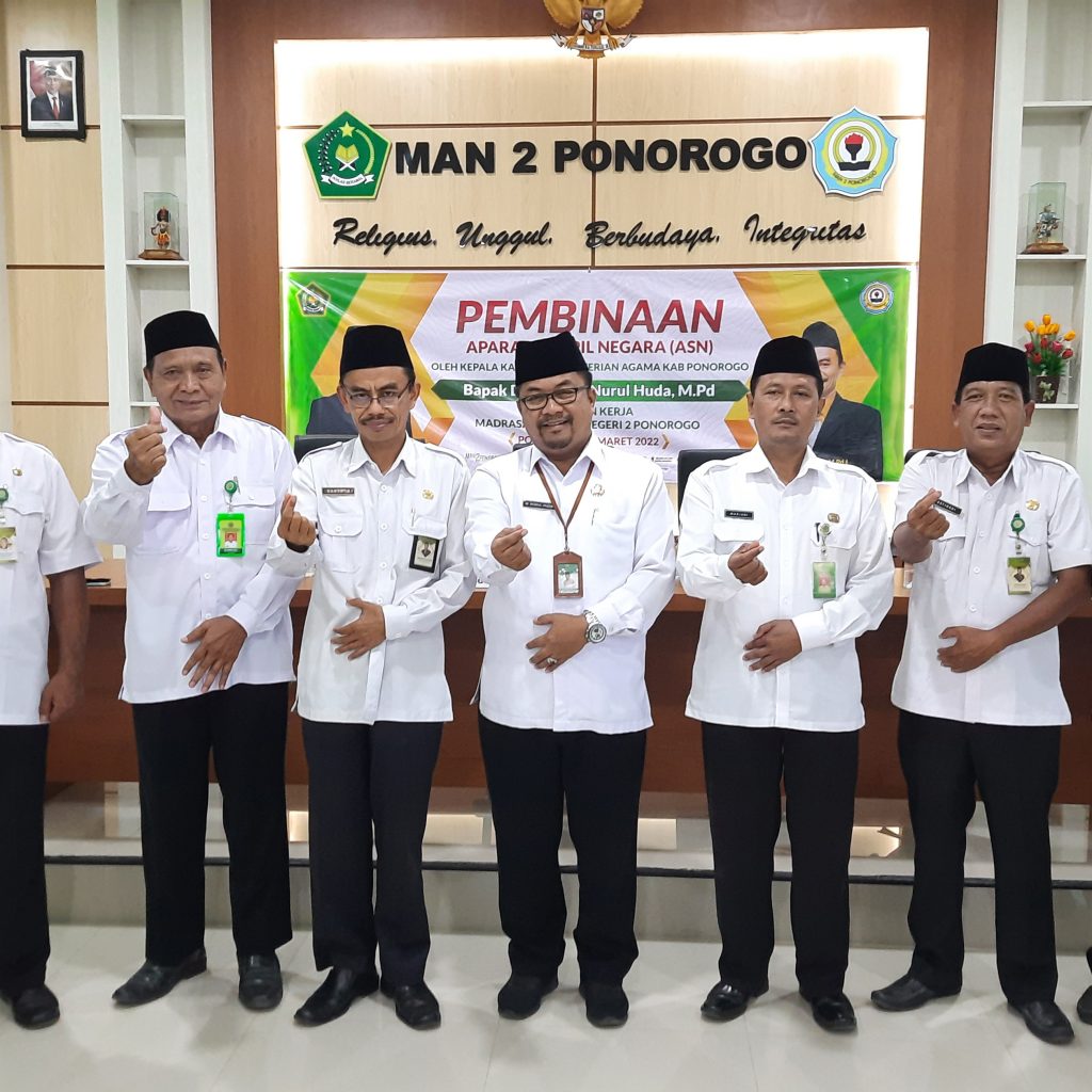 “Kami sangat berharap bagaimana para guru dan tenaga kependidikan dapat memahami apa yang saya sampaikan dan diadopsi. Setelah diadopsi kemudian diimplementasi. Setelah di implementasi kemudian dievaluasi. Ketika mampu mengadopsi, mengimplementasikan, dan mengevaluasi insyaallah Madrasah Aliyah Negeri 2 Ponorogo ini akan menjadi hebat, bermartabat, mandiri dan terus berprestasi”. Demikian harapan Bapak Dr.H.Moh.Nurul Huda, M.Pd. setelah diadakannya kegiatan Pembinaan ASN kali ini.