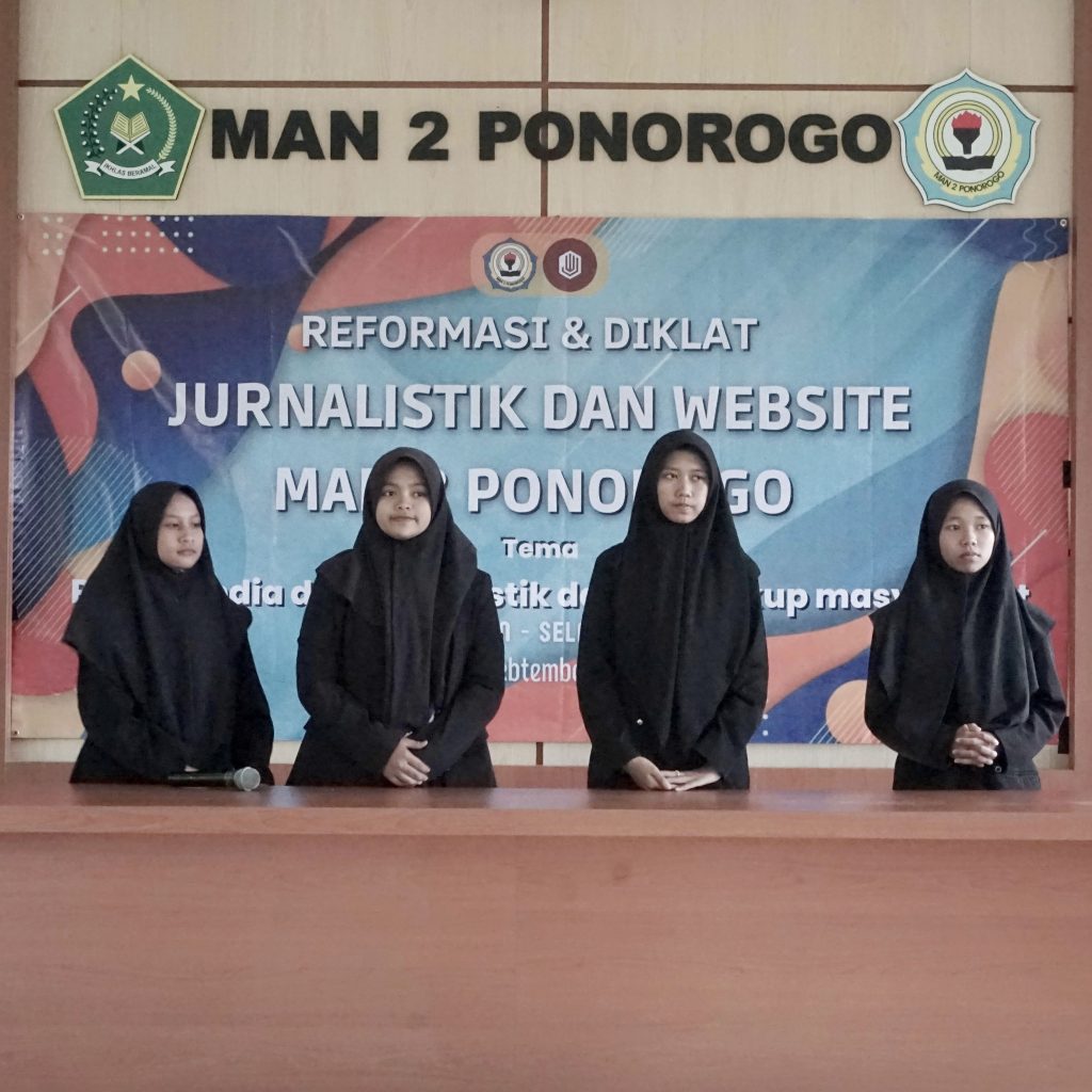 Rabu, 7/9/2022. Organisasi Jurnalistik-Web MAN 2 Ponorogo menyelenggarakan reformasi dan diklat yang berlangsung selama 2 hari, Senin, 5 September hingga Selasa, 6 September 2022. Reformasi dan diklat pada tahun ini bertema “Peran Media dan Jurnalistik dalam Lingkungan Masyarakat”. Kegiatan diadakan di lingkup madrasah. Acara pembukaan dipimpin oleh Waka Humas, ibu Evie Meilianasari, S.Pd.,M.Pd.I bertempat di aula MAN 2 Ponorogo. Reformasi dan diklat ini diikuti oleh siswa kelas 10, 11, 12 yang tergabung dalam Organisasi Jurnalistik-Web.