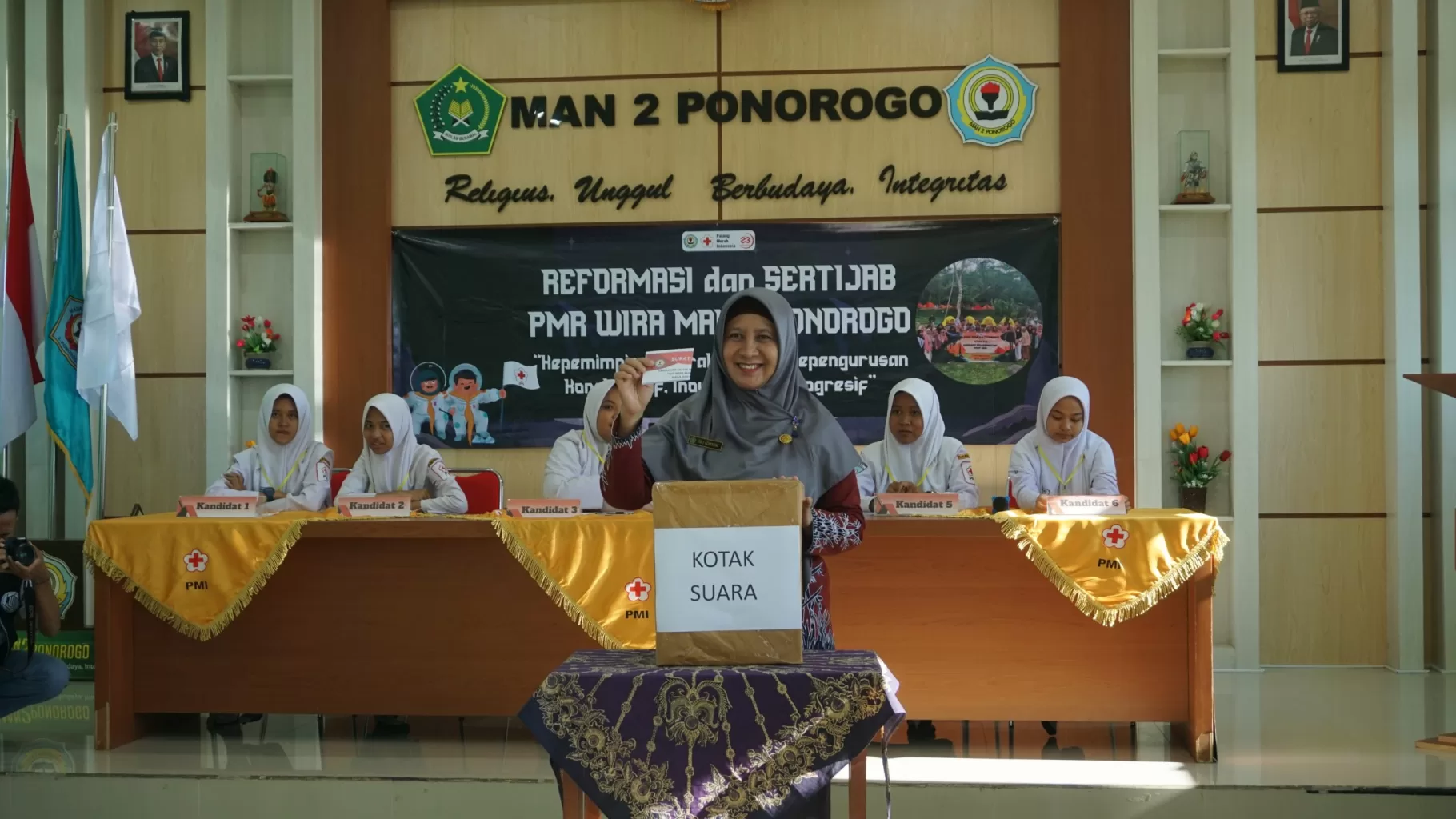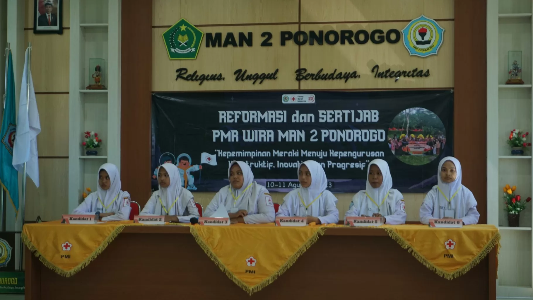 Ponorogo, 10 Agustus 2023. Kepengurusan PMR WIRA MAN 2 PONOROGO periode 2022/2023 yang sudah mencapai masa jabatan satu tahun. Hari ini diadakan reformasi. Kegiatan dibuka oleh Waka Kesiswaan MAN 2 Ponorogo,bapak Wilson Arifudin, S.Pd, bertempat di aula MAN 2 Ponorogo.