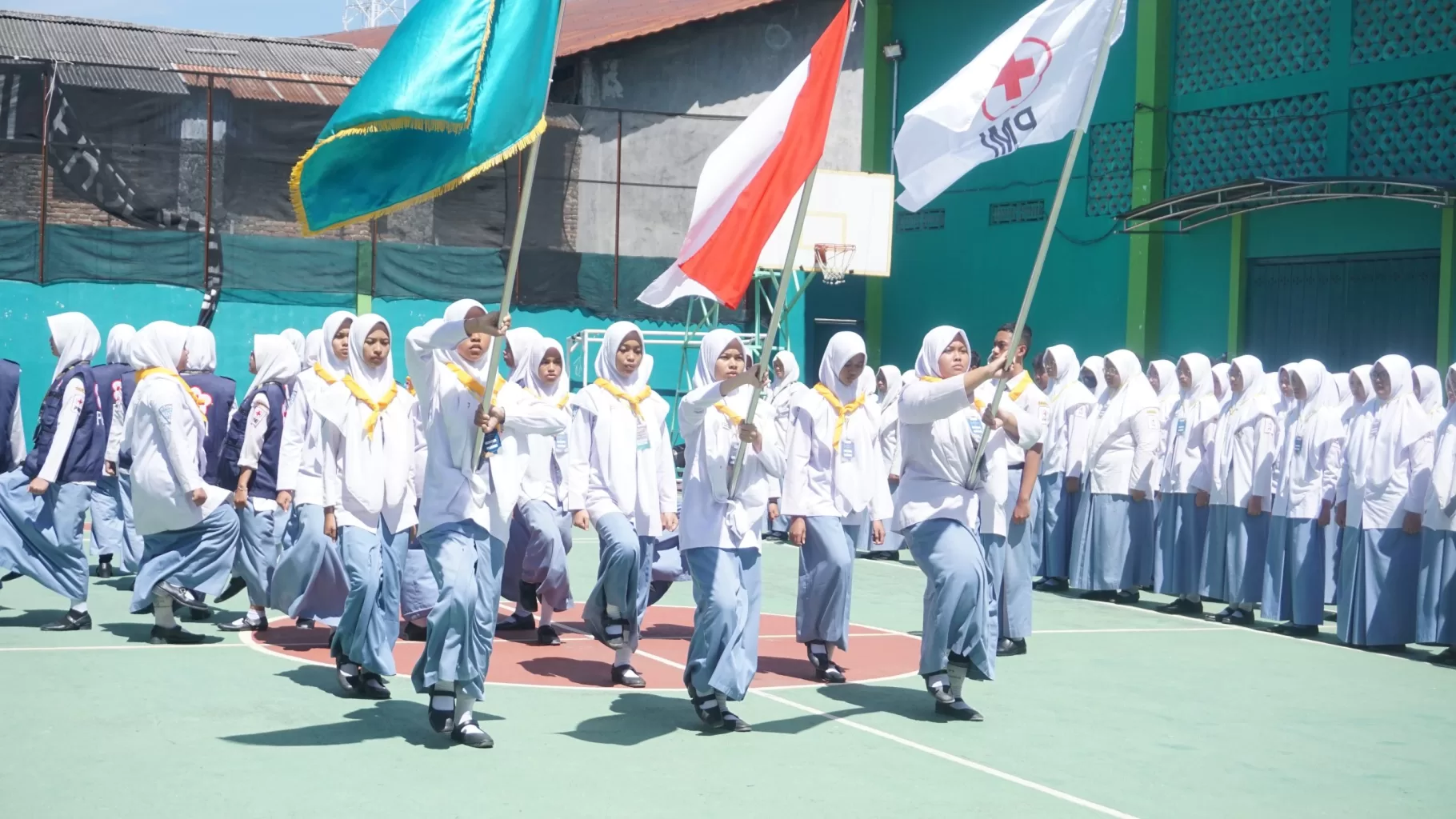 Rangkaian kegiatan serah terima jabatan diawali dengan apel dan dilanjutkan dengan acara siraman terhadap pengurus PMR yang baru. Berikutnya acara potong tumpeng oleh Ibu Evie Meilianasari, S.Pd, M.Pd.I dan Ibu Yuli Achyarini S.Pd.I, M.Pd. Pada kesempatan ini anggota PMR MAN 2 Ponorogo memberikan buah tangan untuk Ibu Yuli Achyarini selaku pembina PMR. Acara berakhir di GOR berupa tukar kado sesama anggota PMR.