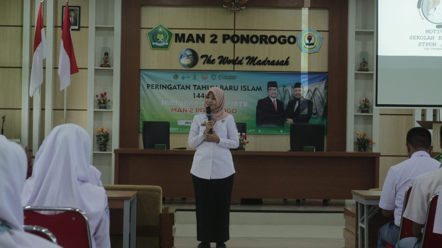 Ponorogo, (24/7/2024). Sebagai bentuk komitmen MAN 2 Ponorogo terhadap progam kedinasan. Pagi hari ini, telah dilaksanakan kegiatan sosialisasi serta pemaparan materi kedinasan oleh Ibu Etik Mudarifah, S.STP, M.Si yang merupakan alumni dari STPDN/IPDN. Kegiatan tersebut diikuti oleh seluruh siswa-siswi kelas kedinasan, dan juga siswa-siswi MAN 2 Ponorogo yang berminat dan memiliki keinginan untuk melanjutkan pendidikan di kedinasan. Sebagaimana kegiatan itu dilaksanakan pada pukul 07.00 sampai dengan 08.45, yang bertempat di aula MAN 2 Ponorogo.