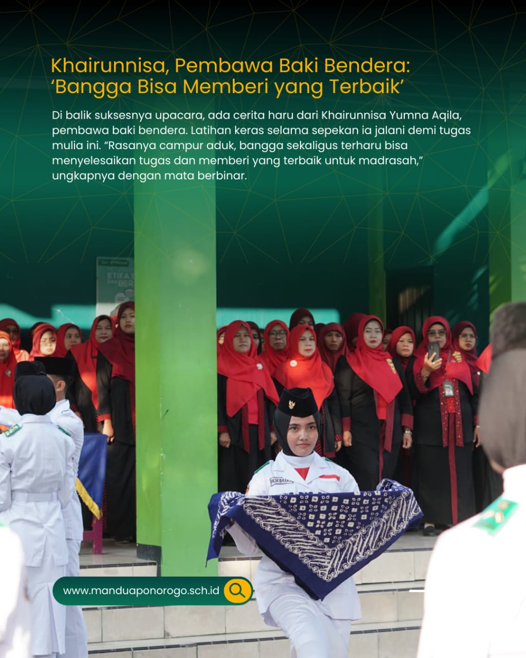 Dengan semangat nasionalisme yang menggelora, upacara peringatan HUT ke-80 RI di MAN 2 Ponorogo berjalan lancar dan meninggalkan pesan penting: kemerdekaan harus terus diisi dengan perjuangan, kerja keras, dan prestasi generasi muda.