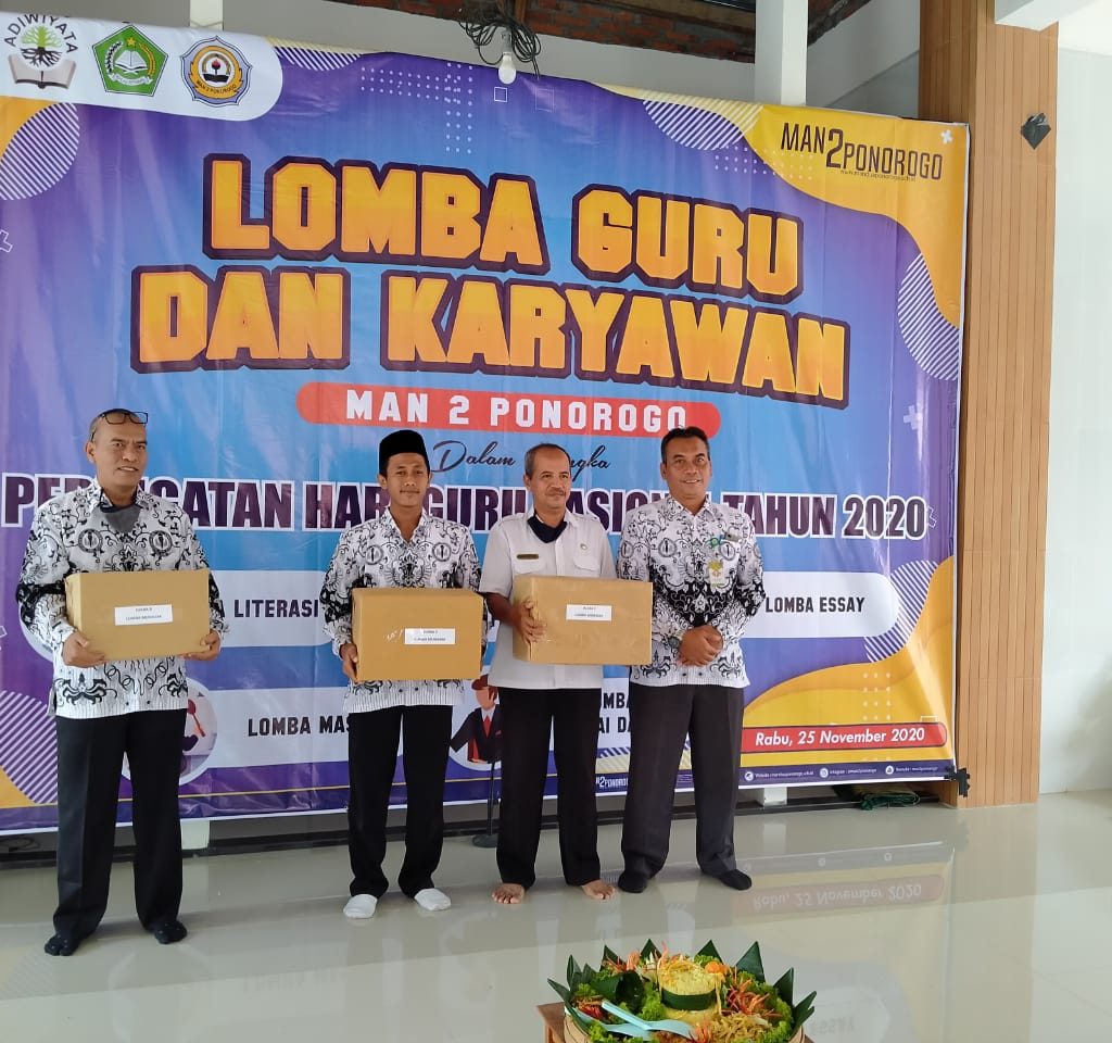 Semarak Hari Guru Nasional 2020 MAN 2 Ponorogo | Rabu, 25 November 2020. Puncak peringatan Hari Guru Nasional 2020 di MAN 2 Ponorogo ditandai dengan acara tasyakuran sekaligus pembagian hadiah untuk pemenang lomba guru dan karyawan yang dilaksanakan di Masjid Tarbiyatul Muttaqin dengan nuansa kekeluargaan.