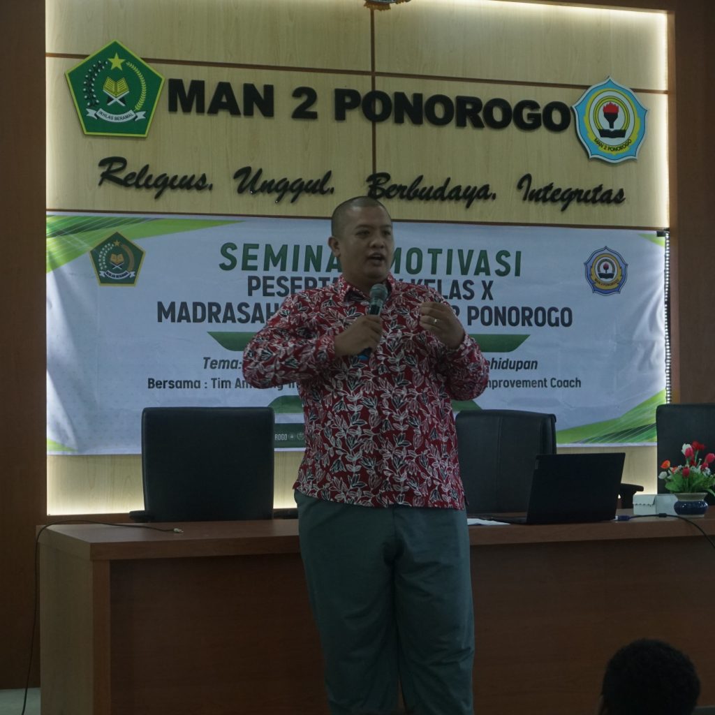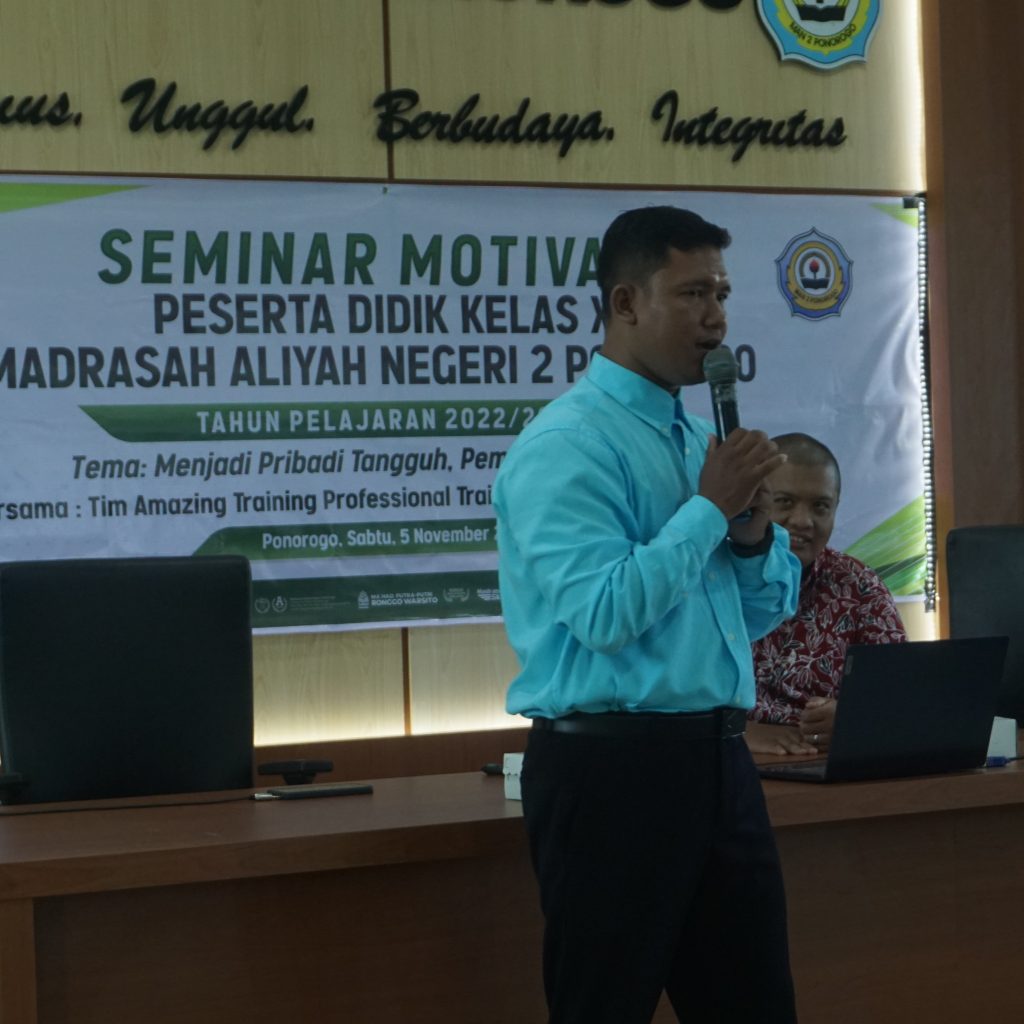 Seminar Parenting dan Motivasi yang dilaksanakan MAN 2 Ponorogo mendatangkan tim amazing training profesional trainer and self improvement coach dengan pemateri : Erfan Nuryadi, C.Ht. M.Tp., Isnan Hidayat, S.Psi. dan Angga L. Putra, S.E.