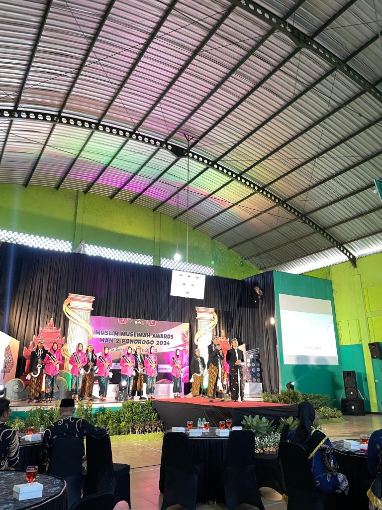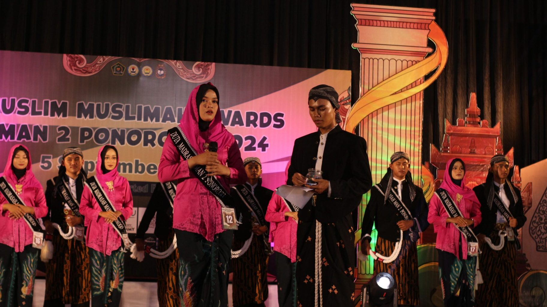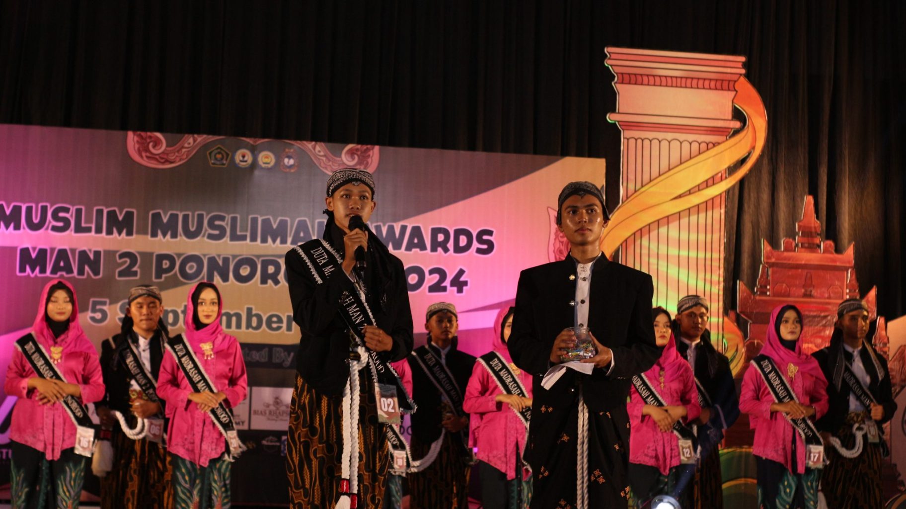 Ponorogo (5/9/2024). MAN 2 Ponorogo menggelar acara Pemilihan Duta Madrasah Muslim Muslimah Awards (MMA) 2024. Setelah melewati beberapa tahap seleksi, terpilih 10 pasang finalis yang hari ini masih akan berkompetisi memperebutkan posisi first, second, third, tervaforit, dan winner. Para duta sangat bersemangat saat menjelang grand final. Di belakang layar juga penuh sorakan dari para siswa-siswi MAN 2 Ponorogo yang ikut menyaksikan. Selain Bapak-Ibu guru, dihadirkan juga wali murid dari para finalis untuk berpartisipasi melihat penampilan dan memberikan dukungan kepada putra-putrinya.