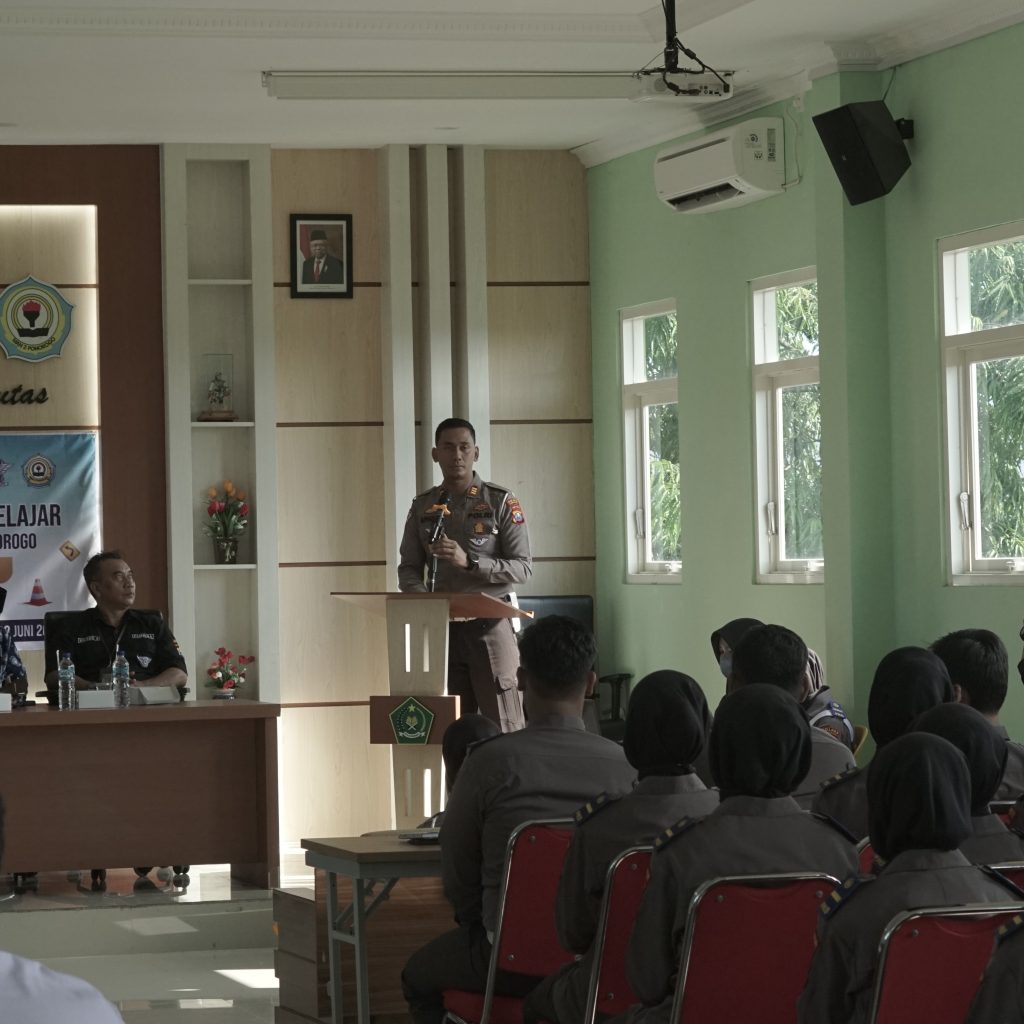 Ponorogo– Kasat Lantas Polres Ponorogo bersama MAN 2 Ponorogo menyelenggarakan Sosialisasi upaya menekan angka Laka Lantas Pelajar yang diikuti oleh 4 organisasi besar MAN 2 Ponorogo yaitu PKS, Pramanda, PMR, dan OSIS yang bertempat di aula MAN 2 Ponorogo, pada Kamis (08/06/2023).
