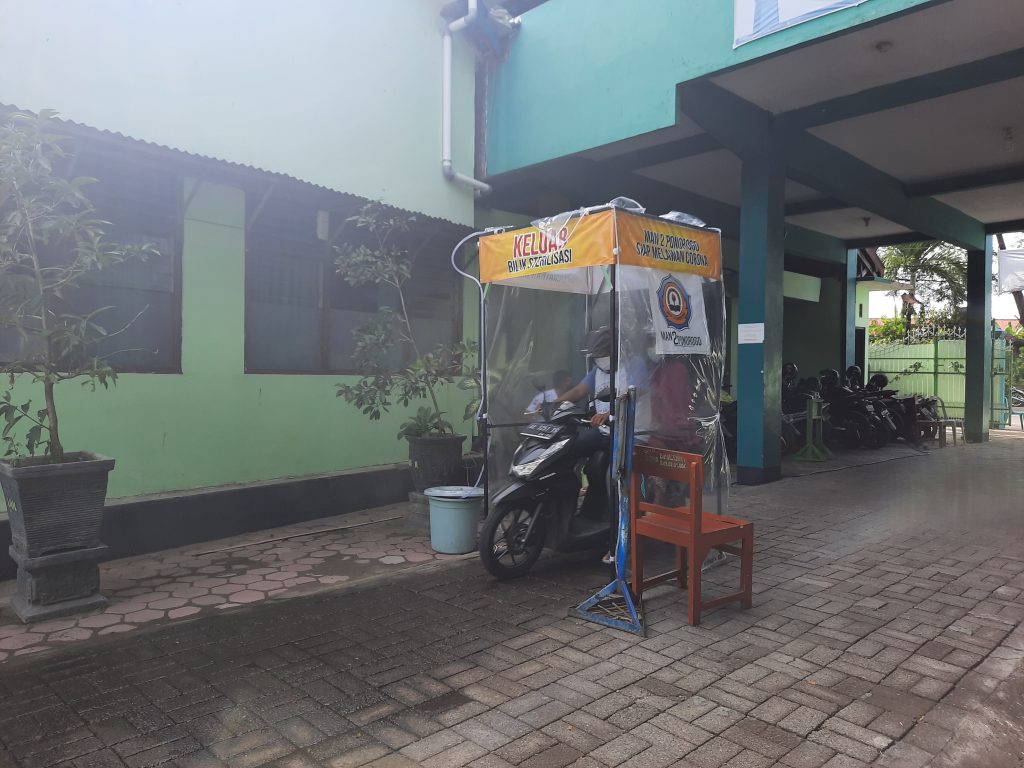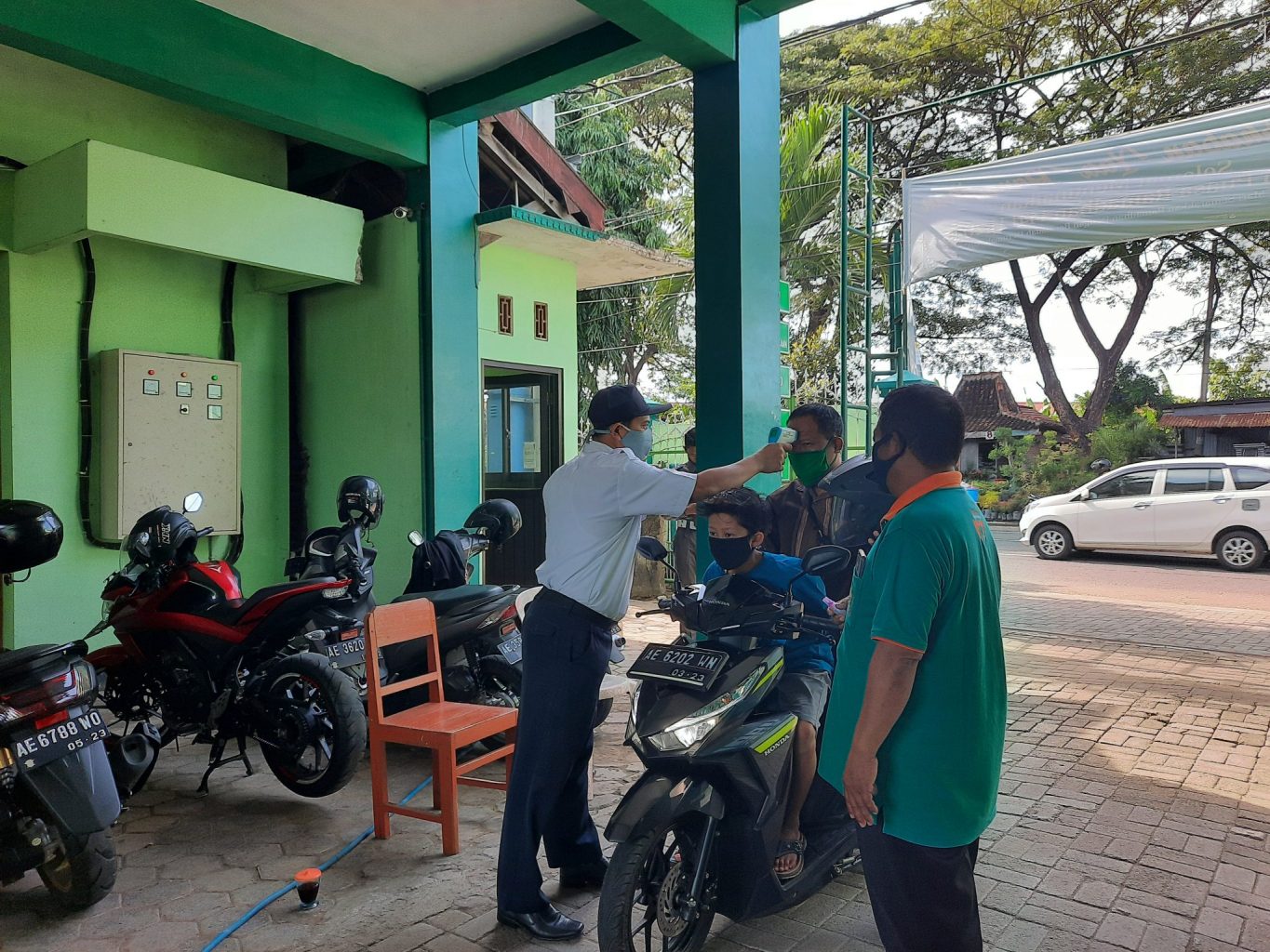 Bapak Nyamiran juga menambahkan bahwa “Kita tetap berpedoman dengan protokol dari gugus tugas penanganan Covid-19 yang diberitahukan oleh pemerintah kabupaten, untuk yang datang ke madrasah dari 400 wali siswa kita beri 3 shift waktu dengan mempertimbangkan physical distancing, dan yang kedua setiap orang yang masuk di lingkup madrasah harus menggunakan masker dan di sterilisasi pada bilik disinfektan”, ujarnya.
