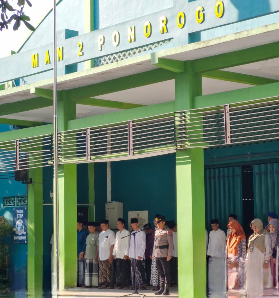 Dalam amanatnya, Bapak Kapolres Ponorogo berpesan agar para pelajar bijak menggunakan media sosial dan tertib berlalu lintas, seperti melengkapi surat kendaraan, memakai helm, serta menjaga keselamatan di jalan. Beliau juga mengingatkan pentingnya disiplin, tanggung jawab, dan semangat belajar untuk menggapai cita-cita, sesuai dengan nilai perjuangan dan keteladanan santri.