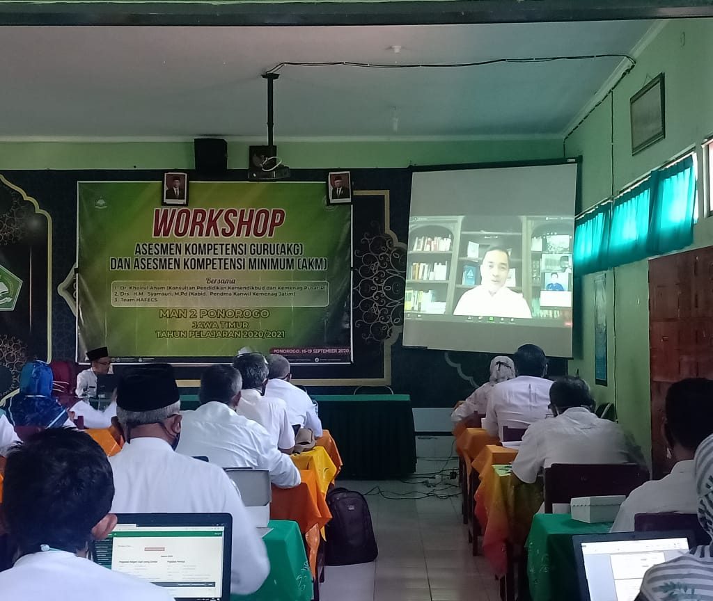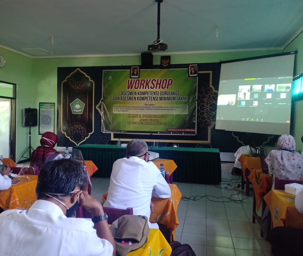 Rabu, 16 September 2020. Kepala madrasah dan guru MAN 2 Ponorogo mulai mengikuti workshop Assessmen Kompetensi Guru(AKG) dan Assesmen Kompetensi Minimum(AKM) yang diadakan oleh MAN 2 Ponorogo bersama Team HAFECS pada Rabu(16/9/2020).