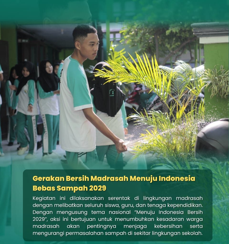 Kegiatan ini dilaksanakan serentak di lingkungan madrasah dengan melibatkan seluruh siswa, guru, dan tenaga kependidikan. Dengan mengusung tema nasional “Menuju Indonesia Bersih 2029”, aksi ini bertujuan menumbuhkan kesadaran warga madrasah akan pentingnya menjaga kebersihan serta mengurangi permasalahan sampah di sekitar lingkungan madrasah.